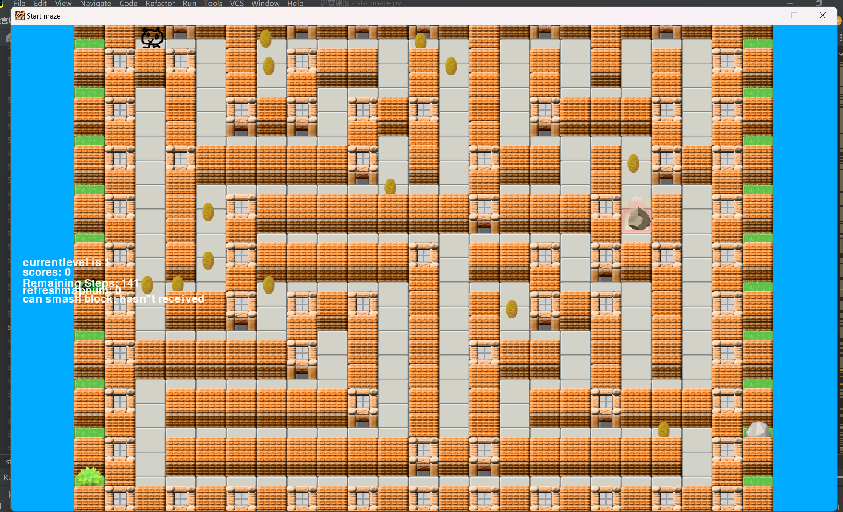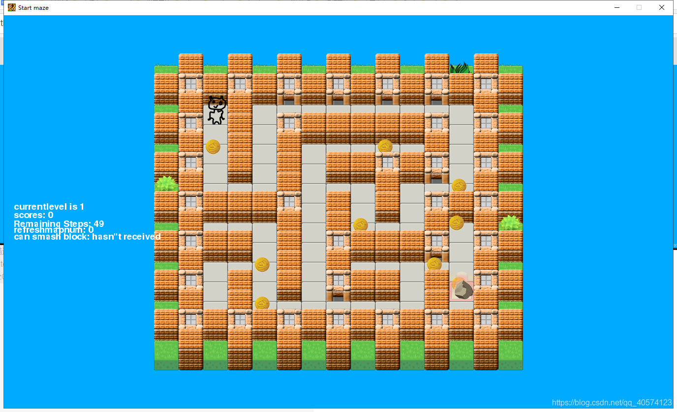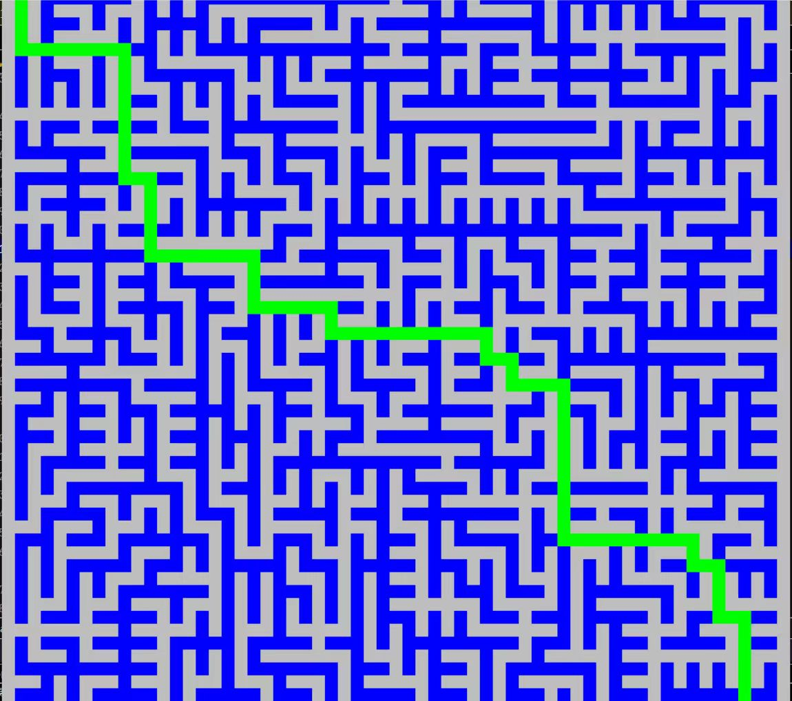 迷宫四周设为墙,并且设有一些无法通行的障碍。在没有障碍的时候,每个点有四个可通方向,分别为上、下、左、右。迷宫有一个入口,一个出口,需要求解一条(或者多条)从入口到出口的通路。