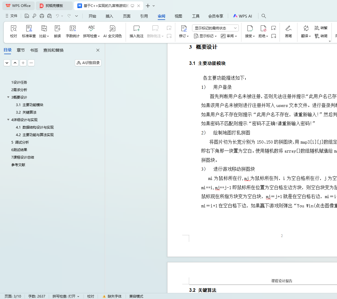 共同解决判断拼图游戏是否有解问题。共同完成设计报告。