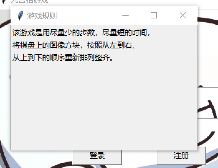 该游戏的目标是实现九宫格拼图游戏的基本游戏功能,以及用户登录注册,对玩家游戏的进度存档和读取。