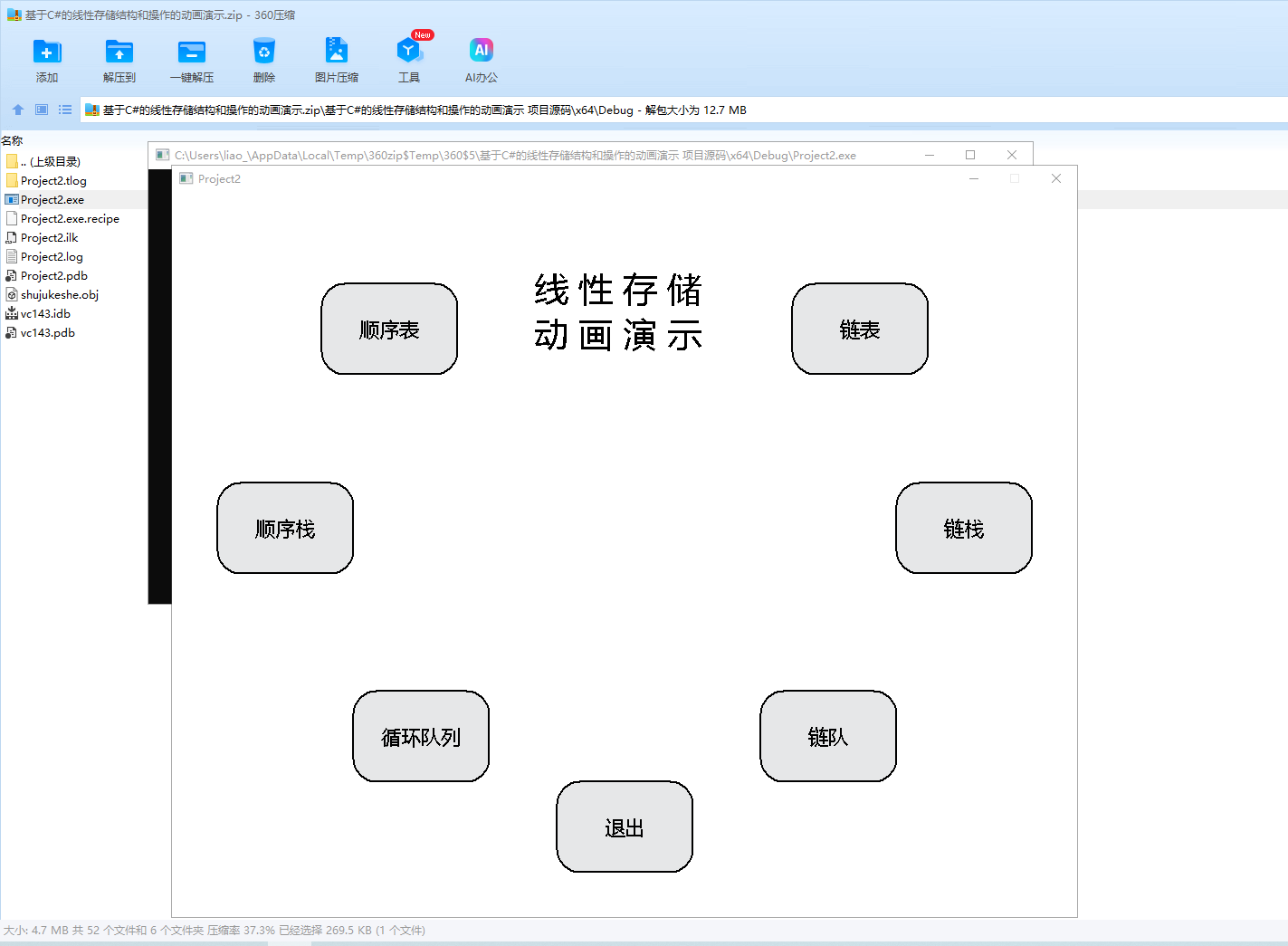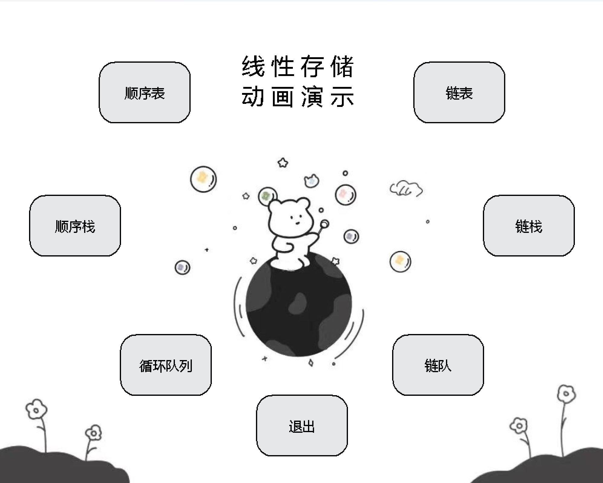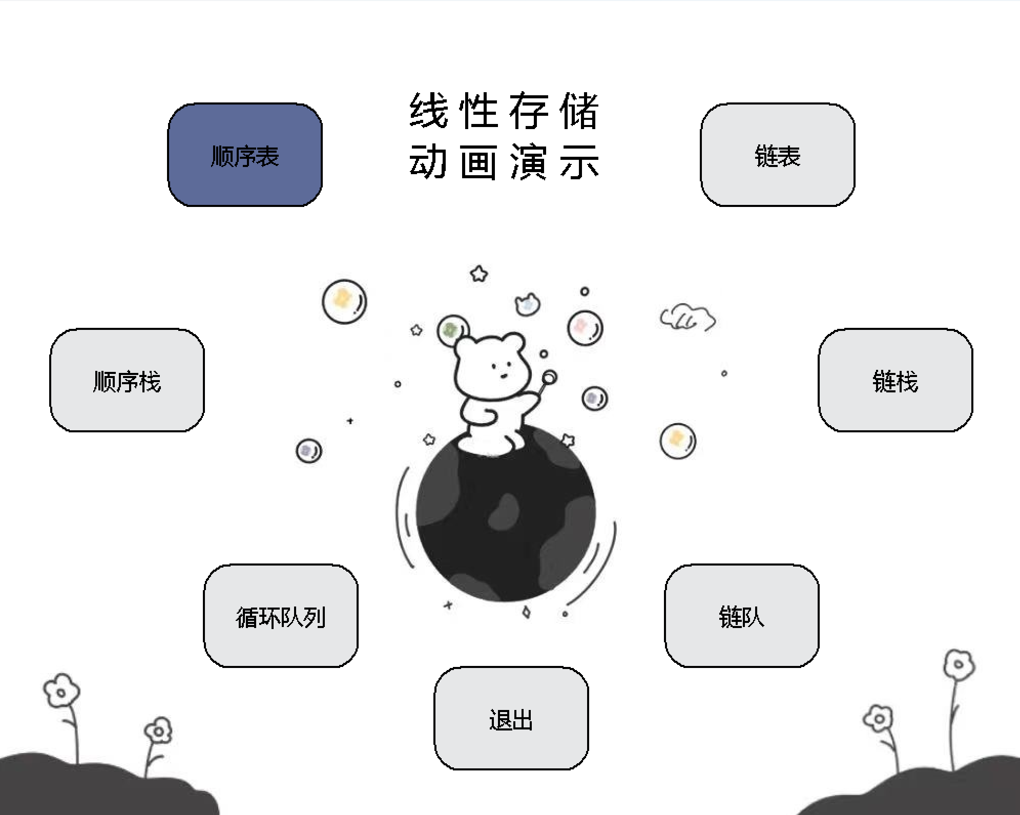 线性结构是数据结构的基础,在各类算法中都有着广泛的应用。但是初学者对于线性结构各类操作后的结构变化往往不能很好地进行想象和理解,从而影响对结构的使用。因此实现一个可视化程序对各类线性结构的内部变换进行可视化展示,对于理解各类操作对应的结构变化是有必要的。
