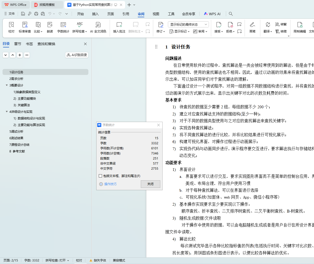 2) 建立对应查找算法支持的数据结构(至少一种);