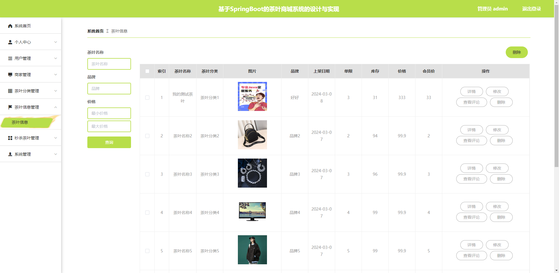 In view of this, the development of an efficient and convenient tea mall system is highly necessary. This system aims to offer users a rapid and high-quality service experience. Users no longer need to waste time and energy on cumbersome shopping processes, as they can easily select their desired tea products in a short period. Meanwhile, the system also assists administrators in enhancing their overall work performance. By streamlining workflows, it reduces unnecessary labor and time costs, enabling more efficient management. For merchants, the system helps expand sales channels and increase product exposure and sales volume.