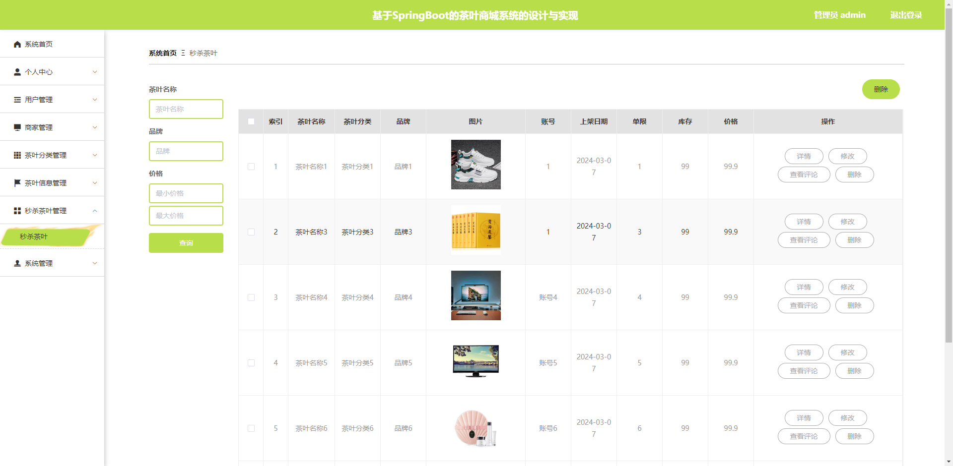 本论文围绕茶叶信息展示、秒杀茶叶活动管理以及商城资讯发布等核心功能特点,采用 JAVA 编程语言,结合功能强大且易于开发的 Spring Boot 框架,以 MySQL 作为数据存储与管理工具,并运用 B/S 系统架构进行茶叶商城系统的设计与开发。通过实际运用该系统,能够有效降低茶叶商城的运营成本,减少人力、物力等资源的浪费,同时显著提高管理效率,增强商城在市场竞争中的优势。