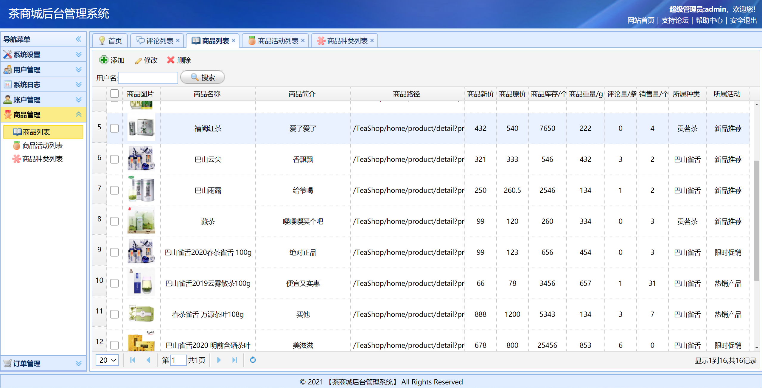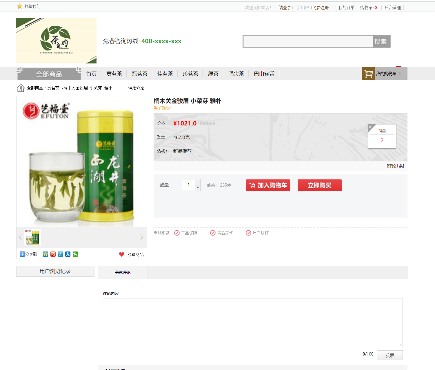 Abstract: Since the beginning of the 21st century, more than 40 years of reform and opening up, the national economy has developed rapidly, people's living standards have generally improved, people pay more and more attention to having a healthy physical condition. Tea drinking is a traditional culture and custom of the Chinese people. China has a long history of tea drinking. With the rise of e-commerce and the advent of the Internet era, people like to buy high-quality and cheap tea on the e-commerce platform. However, there is no e-commerce sales platform with tea as the core in China. In order to solve this problem, a new e-commerce platform is developed The tea sales system based on PC adopts SSM framework, B / S structure, uses MySQL as database storage management tool, and eclipse as development tool, which is mainly divided into website and background. The website is oriented to customers, customers can register to purchase tea, and the background is oriented to managers, which can manage tea, users, orders and logs.