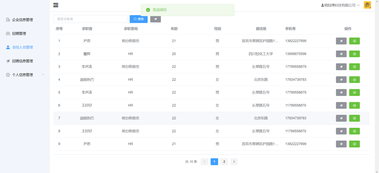 6.2.6企业招聘信息管理测试