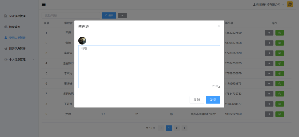 6.2.5录用人员管理测试