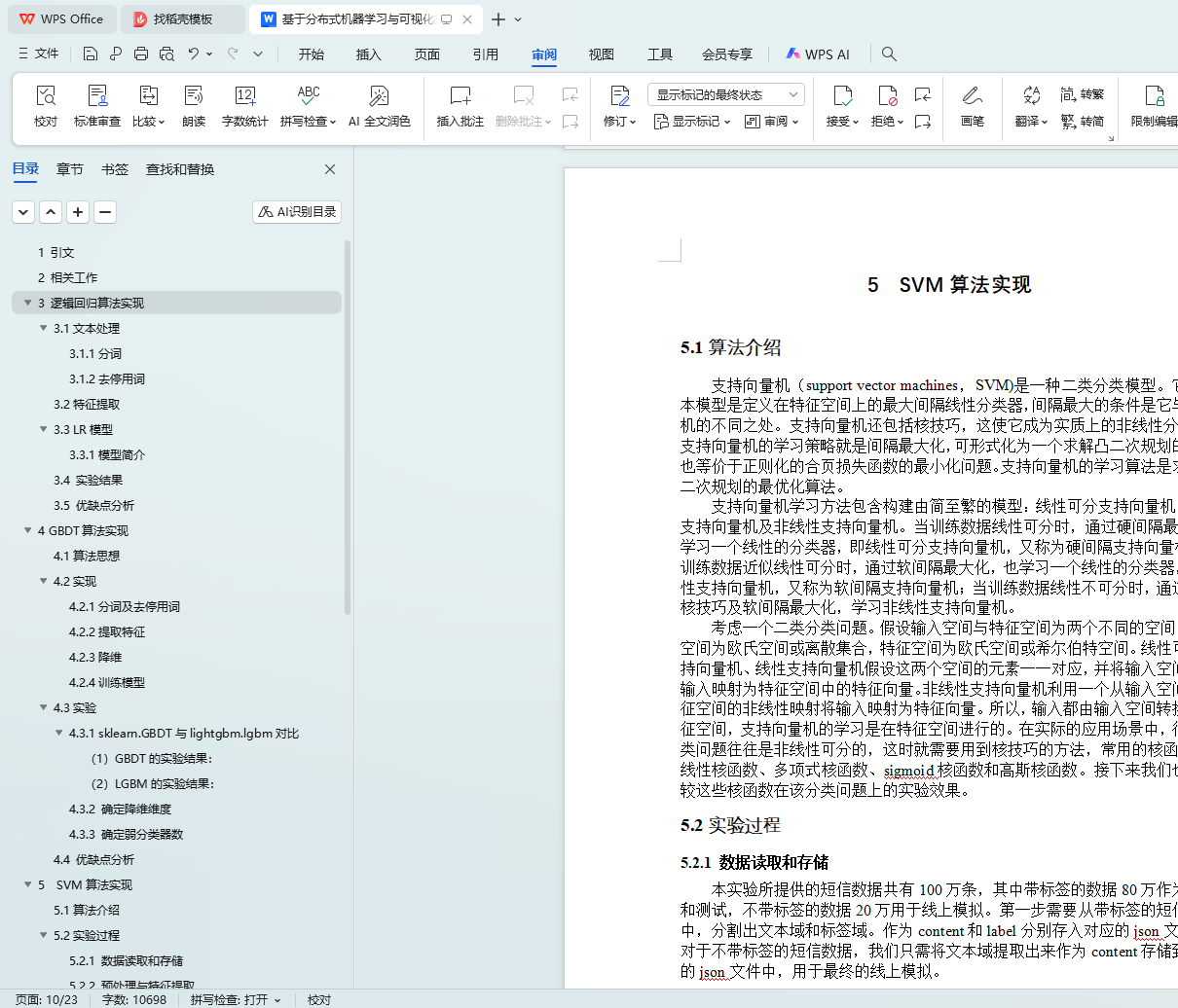 本次毕业设计的选题为垃圾短信分类。在老师所给的垃圾短信数据集上,分别实现了逻辑回归、决策树、SVM、GBDT这个四个分类算法。这四个算法都是老师上课提到的算法,通过动手实验,并进行对比,衡量了算法之间的优劣性,并给出了在不同情况下的选择理由。