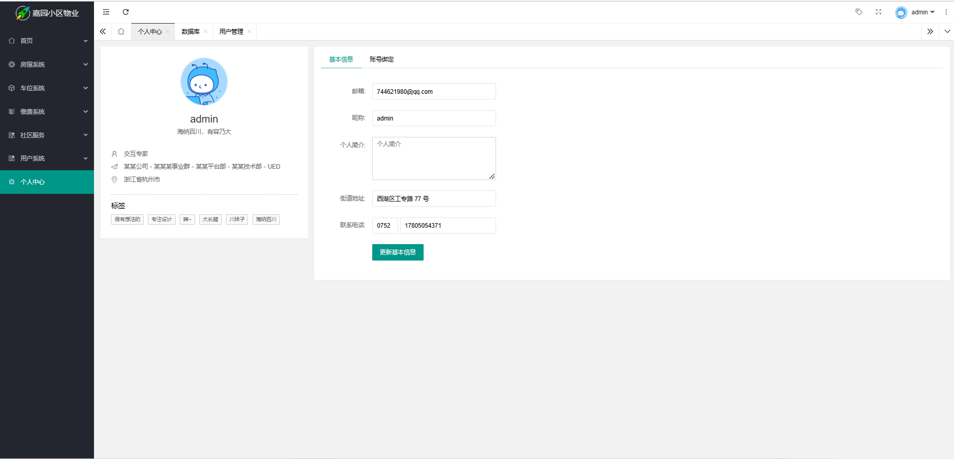 小区物业管理系统是信息化大潮的背景下,对物业管理工作的优化和提升,,以提高工作效率,方便用户。主要功能有对小区的基本信息,住户的信息等进行管理和基本资料管理以及对系统自身的权限管理。物管中心不但含有小区日常项目的信息,而且还包含了查询情况的统计功能。系统管理主要任务是提高系统安全性和对系统提供良好的维护,旨在达到使小区的管理和运营趋于合理化及科学化,使之更加方便、快捷以提高工作效率。