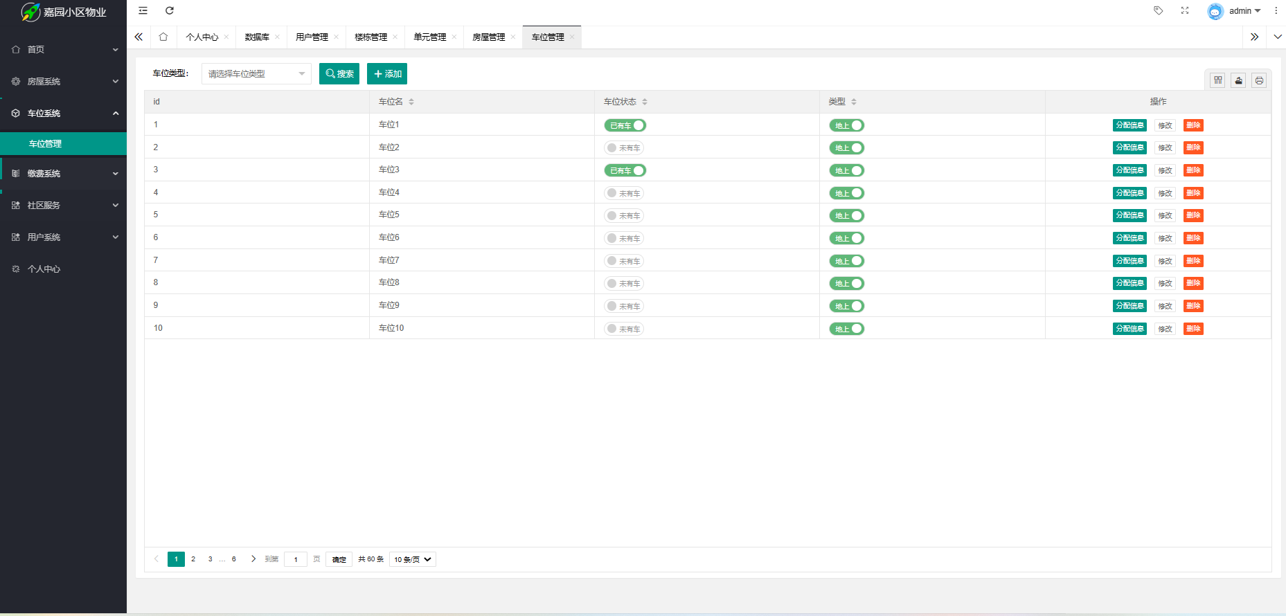 (2) 名字:车位使用信息