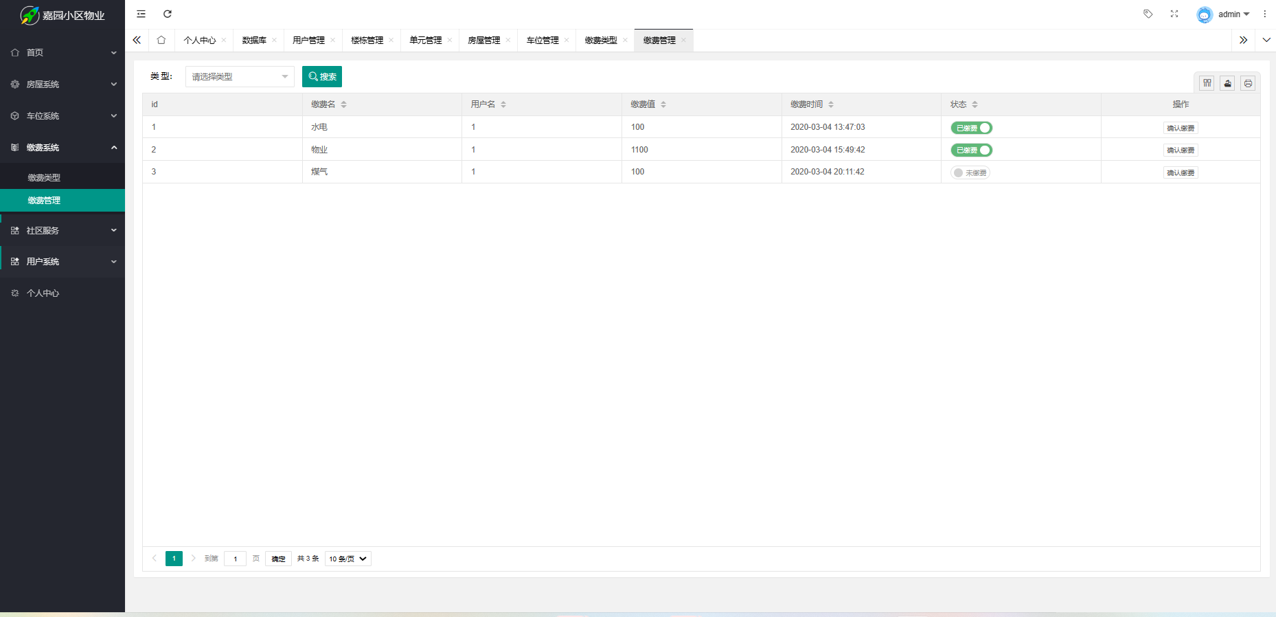 (11) 名字:物管费用信息