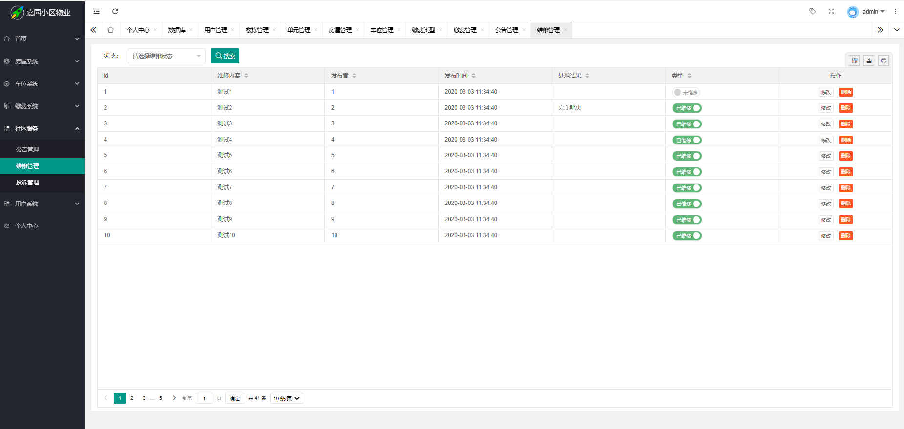(13) 名字:业主维修信息