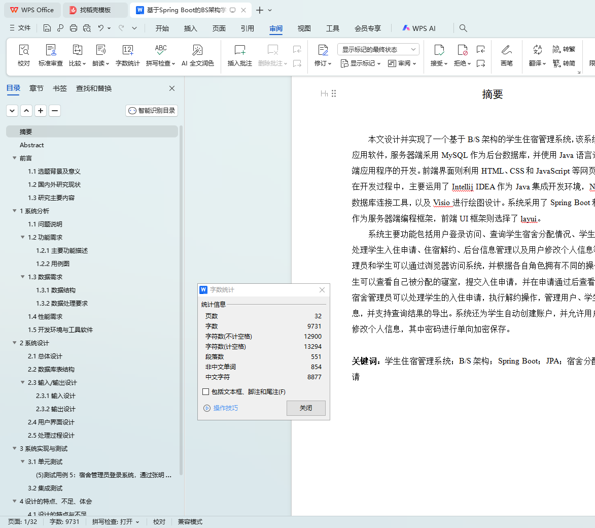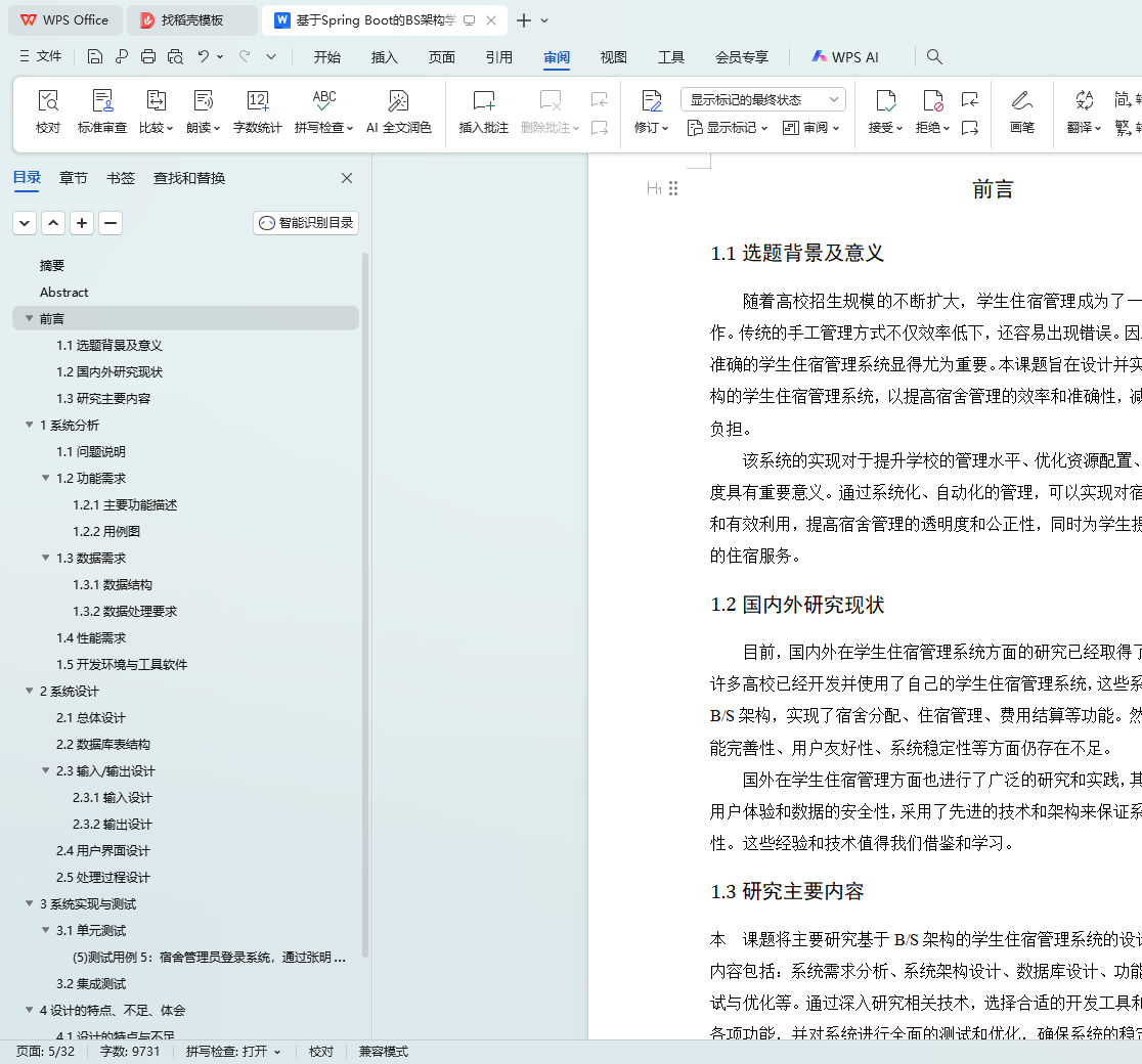 本文设计并实现了一个基于B/S架构的学生住宿管理系统,该系统作为Web应用软件,服务器端采用MySQL作为后台数据库,并使用Java语言进行服务器端应用程序的开发。前端界面则利用HTML、CSS和JavaScript等网页技术构建。在开发过程中,主要运用了Intellij IDEA作为Java集成开发环境,Navicat作为数据库连接工具,以及Visio进行绘图设计。系统采用了Spring Boot和JPA技术作为服务器端编程框架,前端UI框架则选择了layui。
