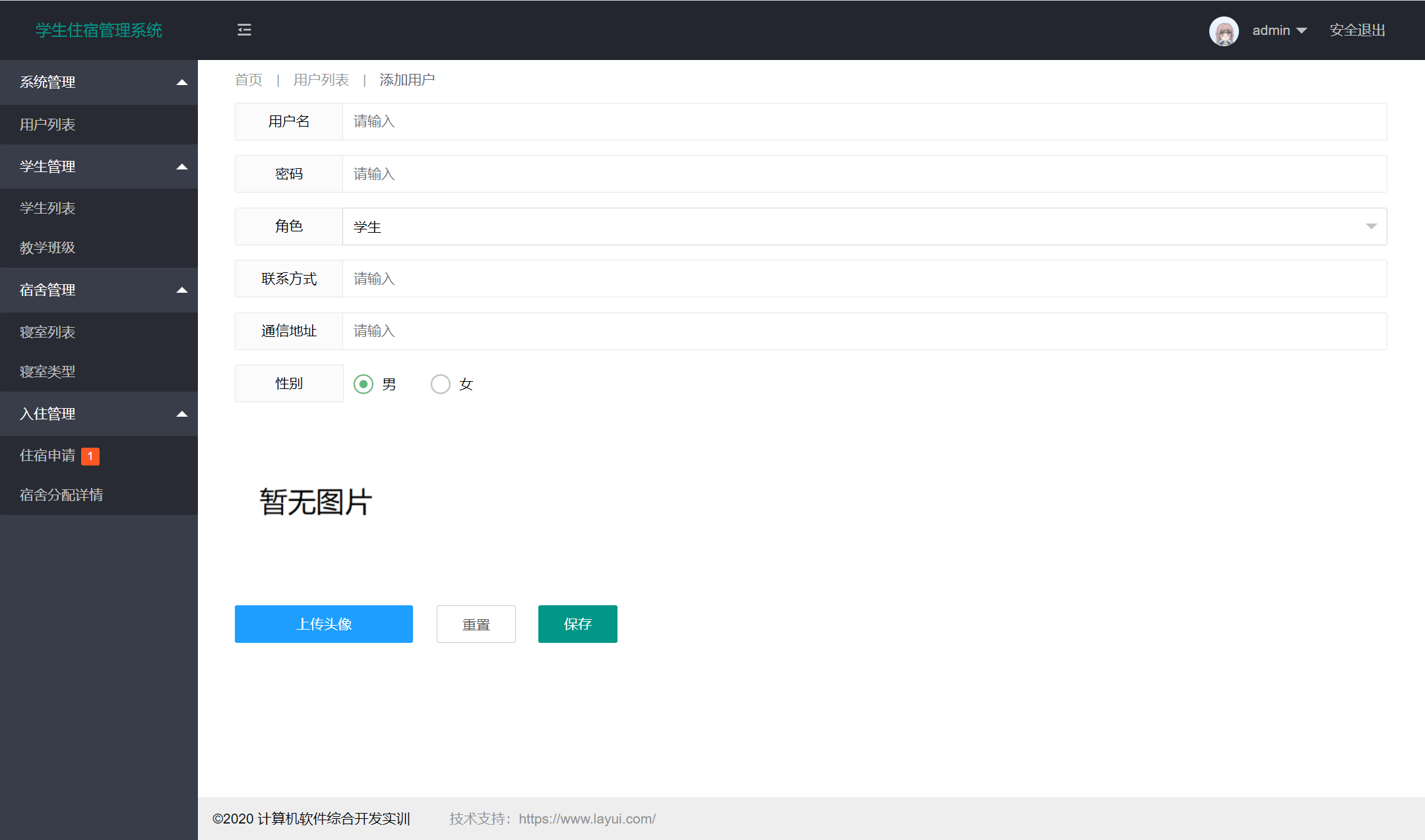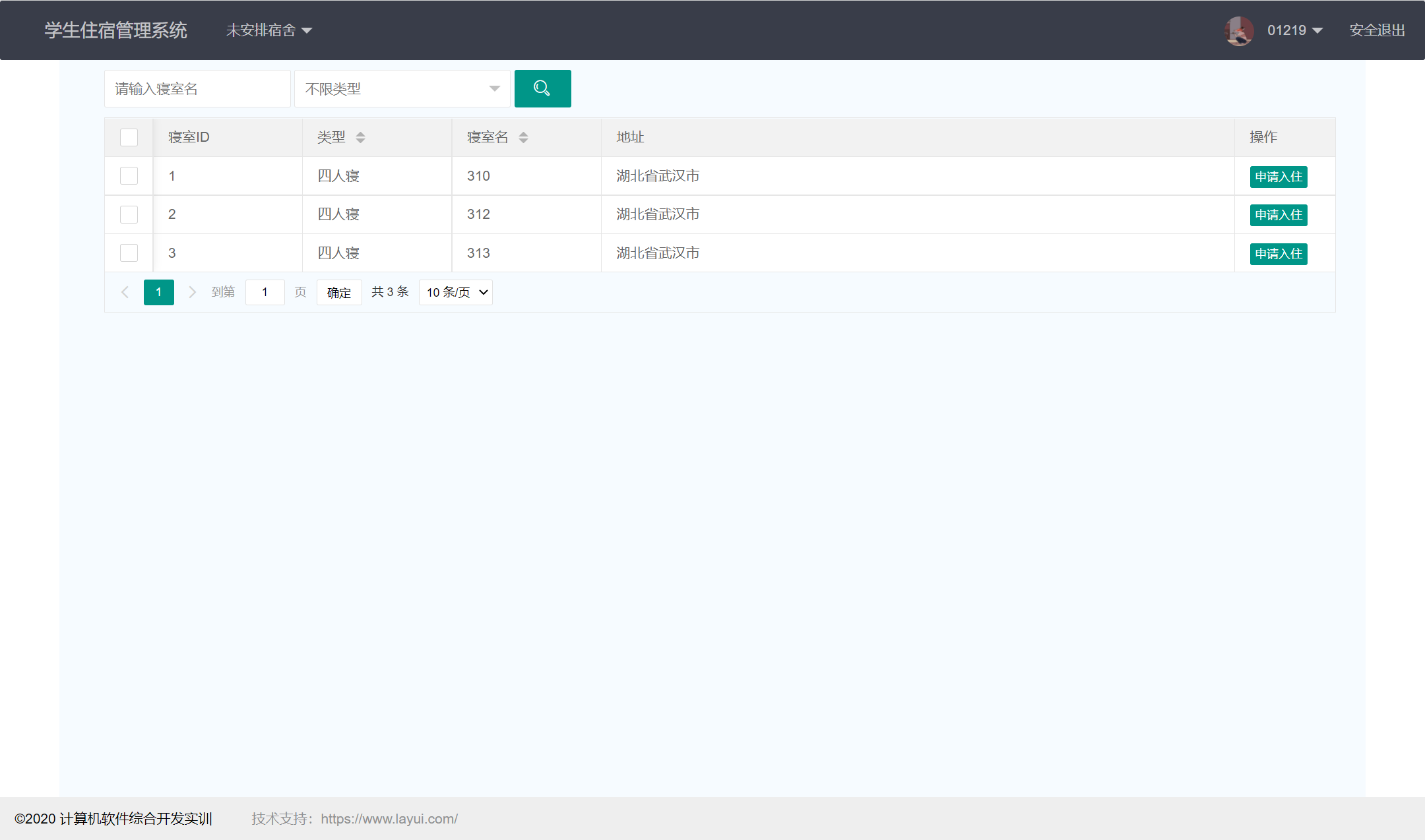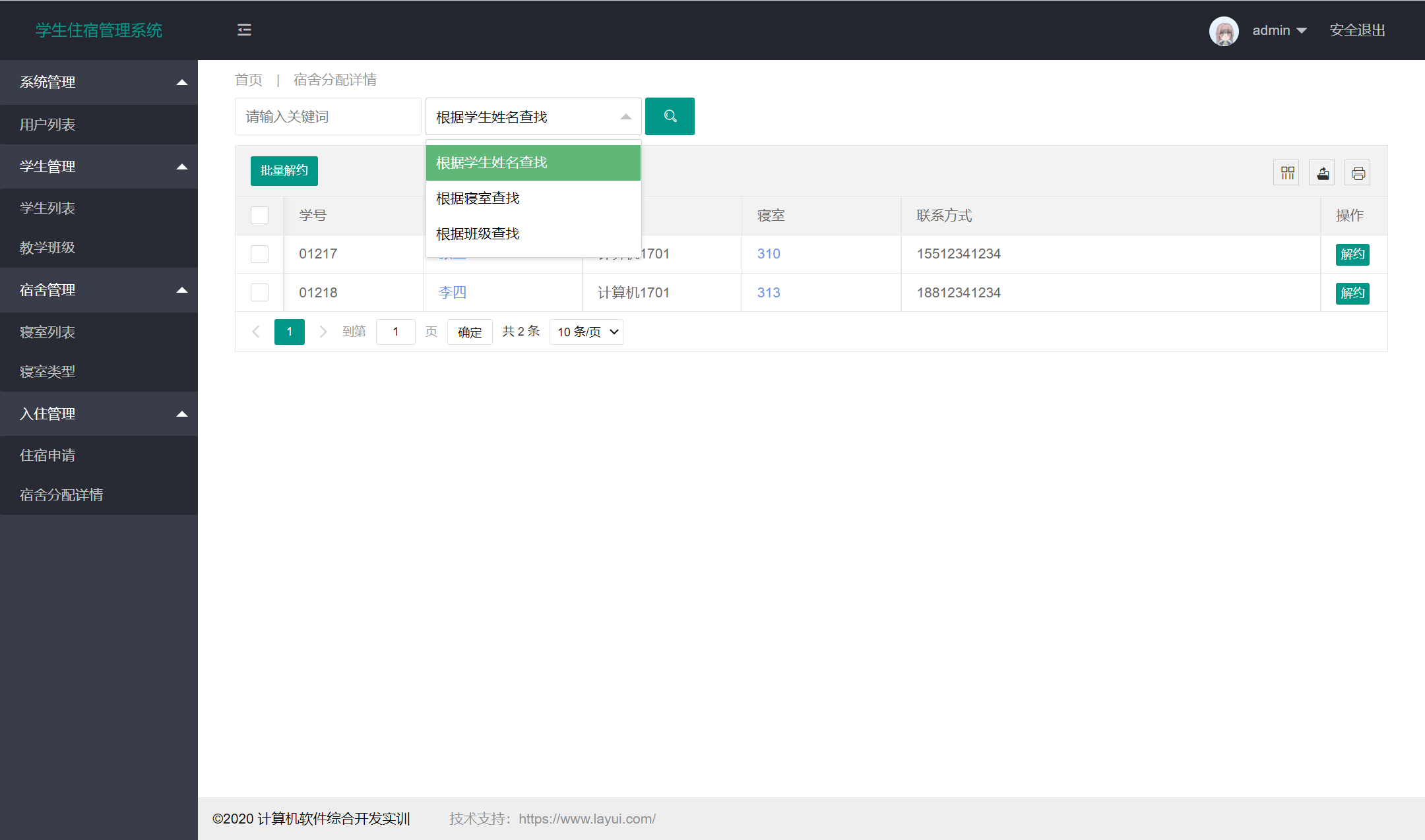 Key words: student accommodation management system; B / S architecture; Spring Boot; JPA; dormitory allocation; check-in application