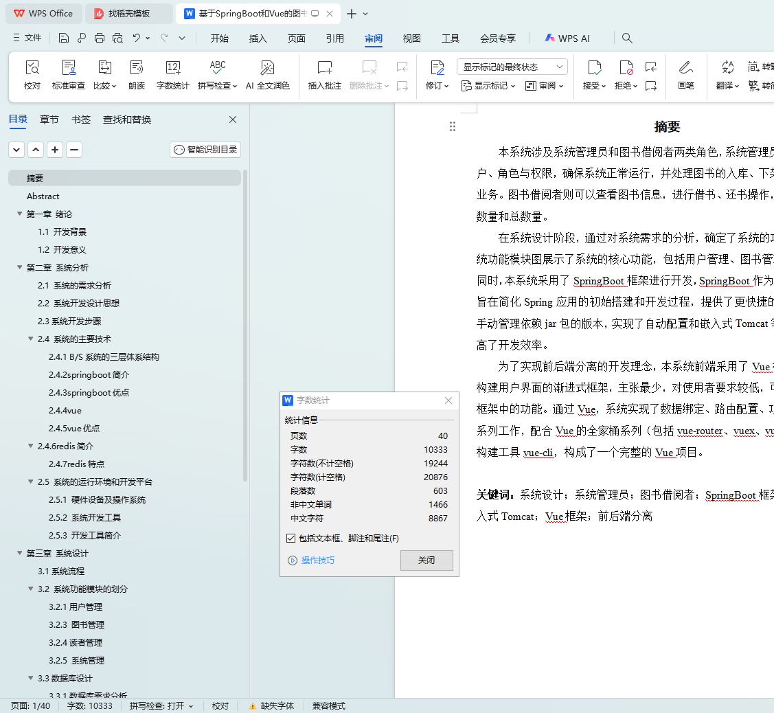 Key words: system design; system administrator; book borrower; SpringBoot framework; automatic configuration; embedded Tomcat; Vue frame; front and rear end separation