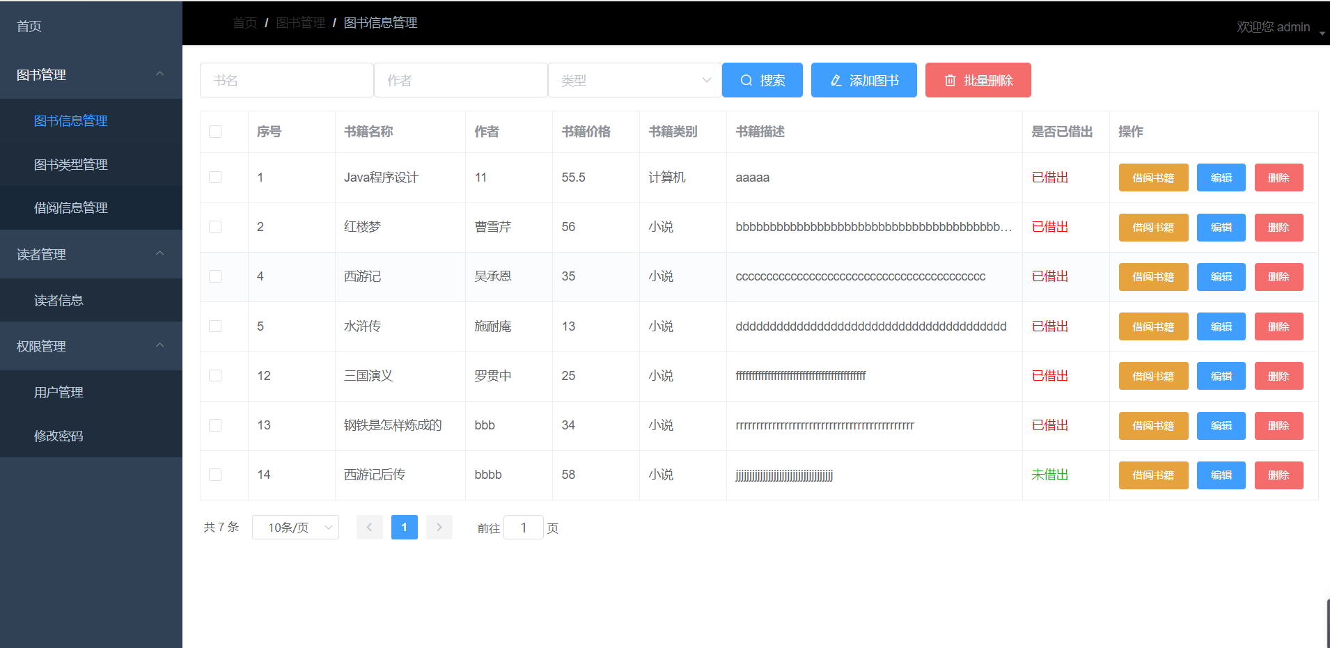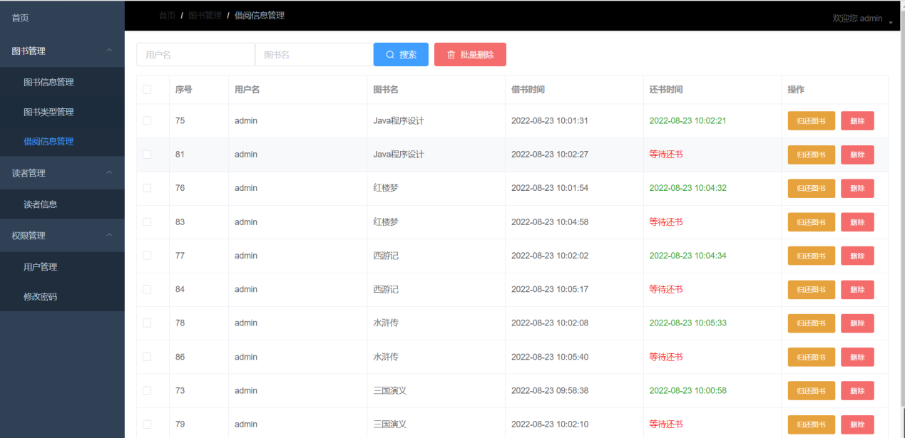 4.1.5图书管理-借阅信息管理