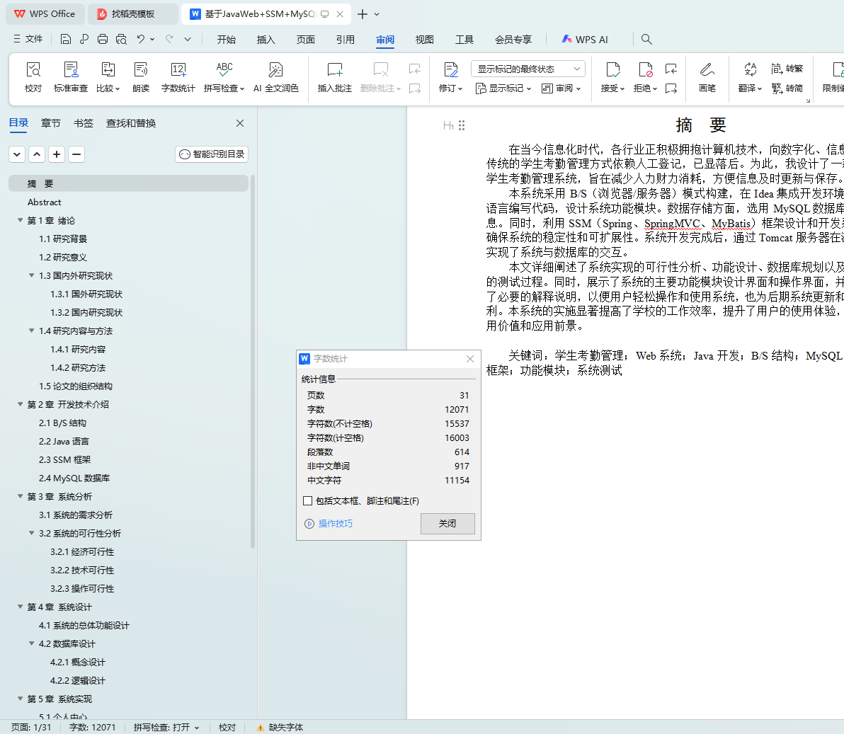 关键词:学生考勤管理;Web系统;Java开发;B/S结构;MySQL数据库;SSM框架;功能模块;系统测试