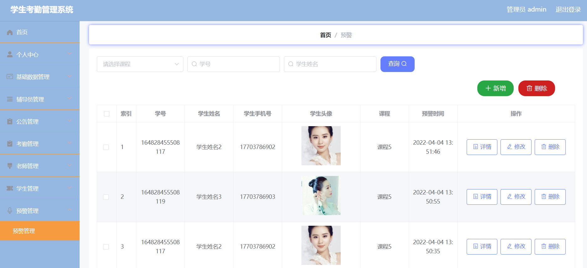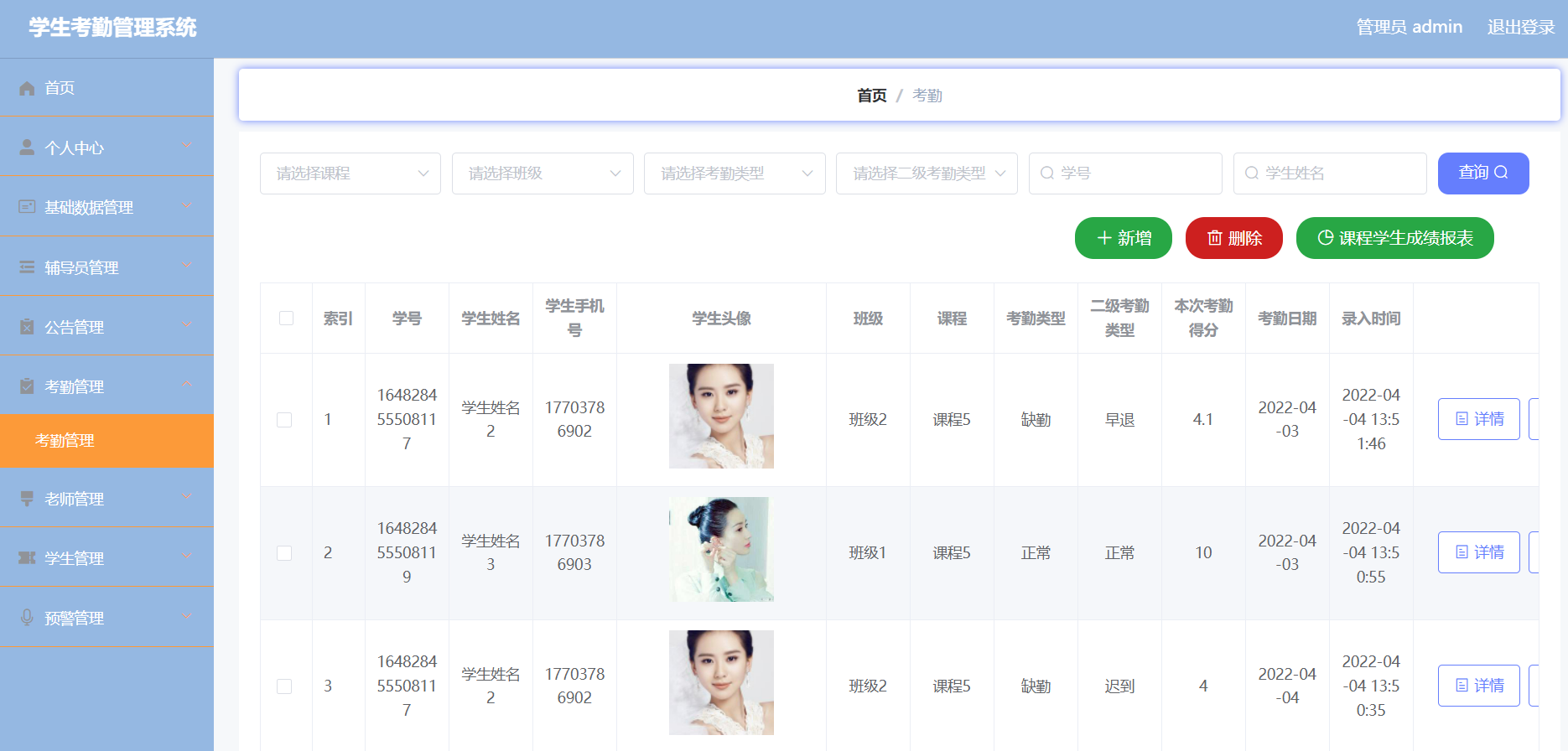 In today's information age, various industries are actively embracing computer technology, to digital, information construction transformation. The traditional student attendance management method depends on manual registration, which has lagged behind. To this end, I designed a Web-based student attendance management system, aiming to reduce the consumption of human resources and financial resources, and facilitate the timely update and preservation of information.