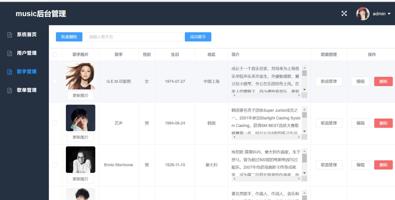 4.1.4歌手管理