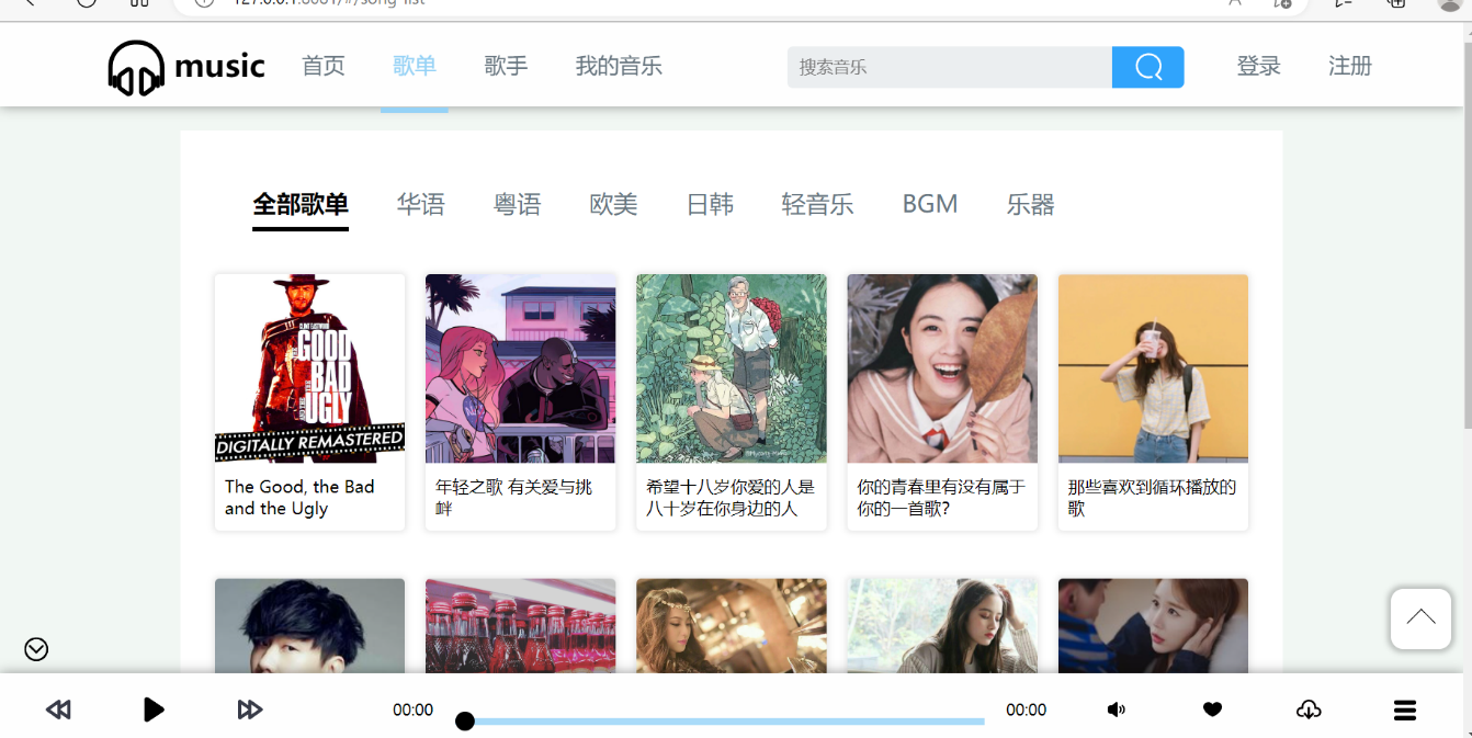 Key words: music website player; front and rear end separation; Vue; Spring Boot; MySQL