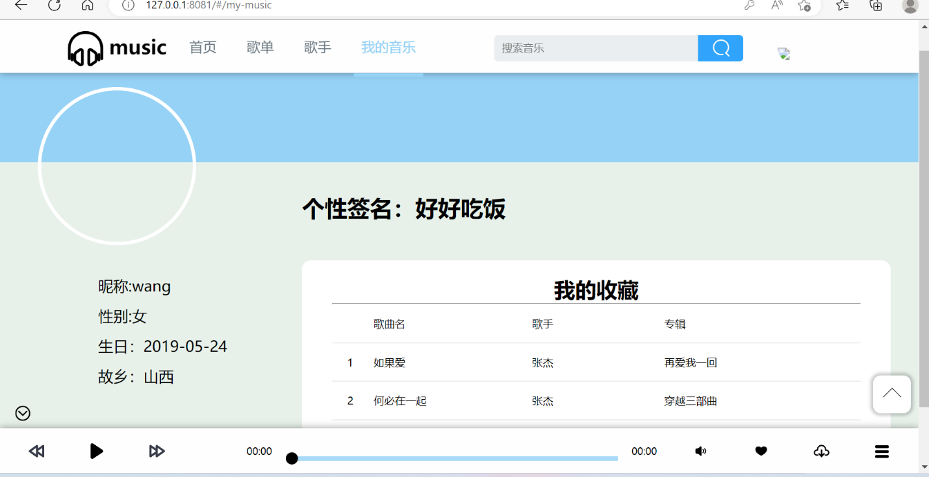 关键词:音乐网站播放器;前后端分离;Vue;Spring Boot;MySQL