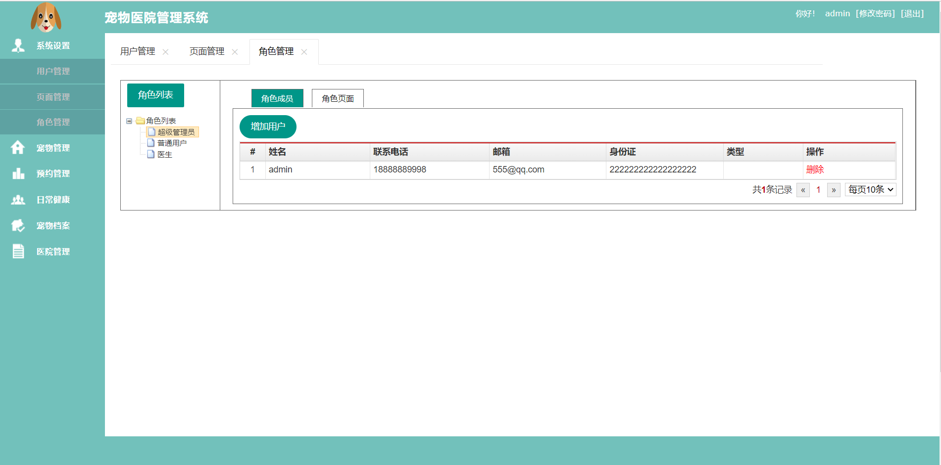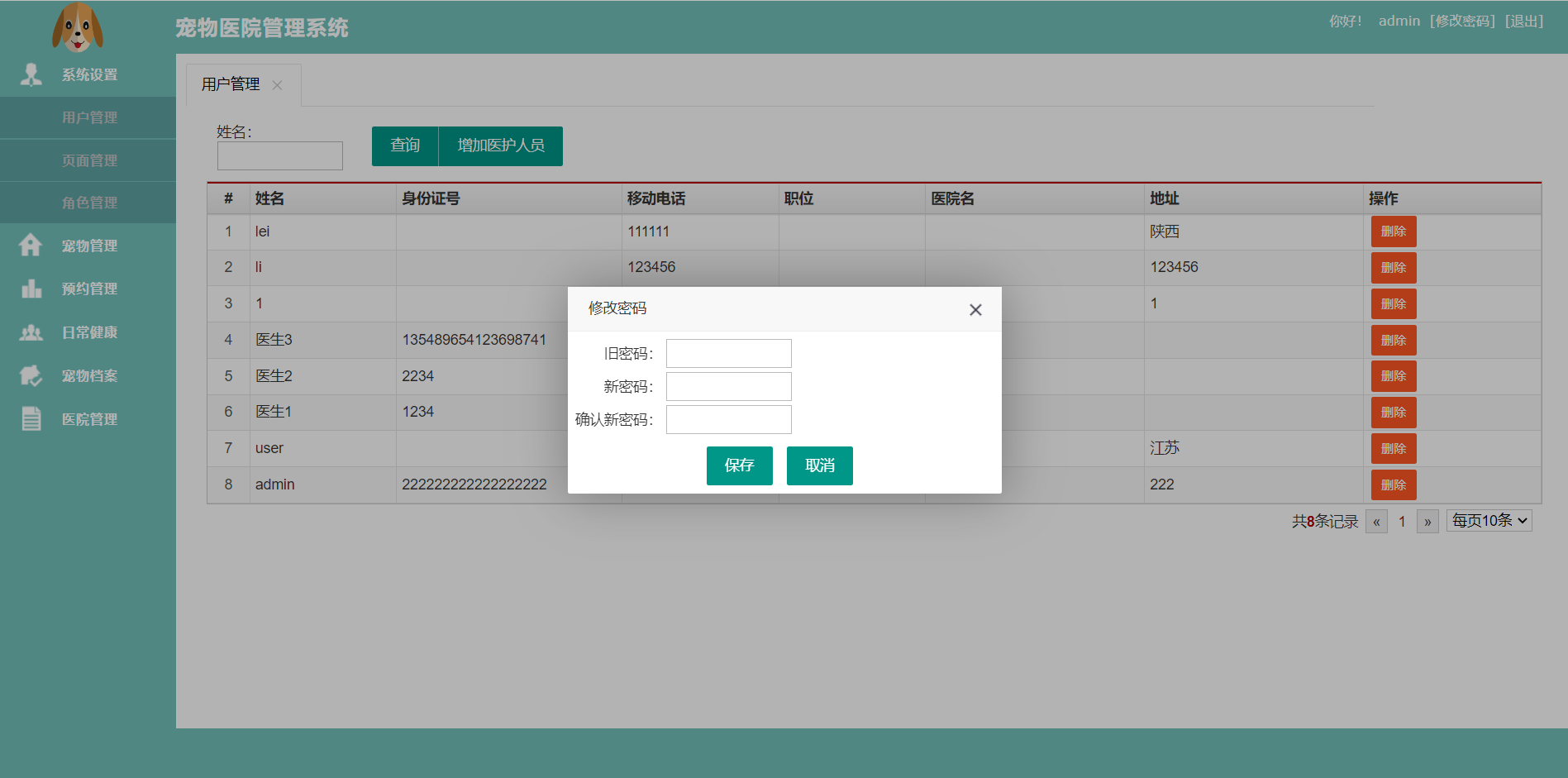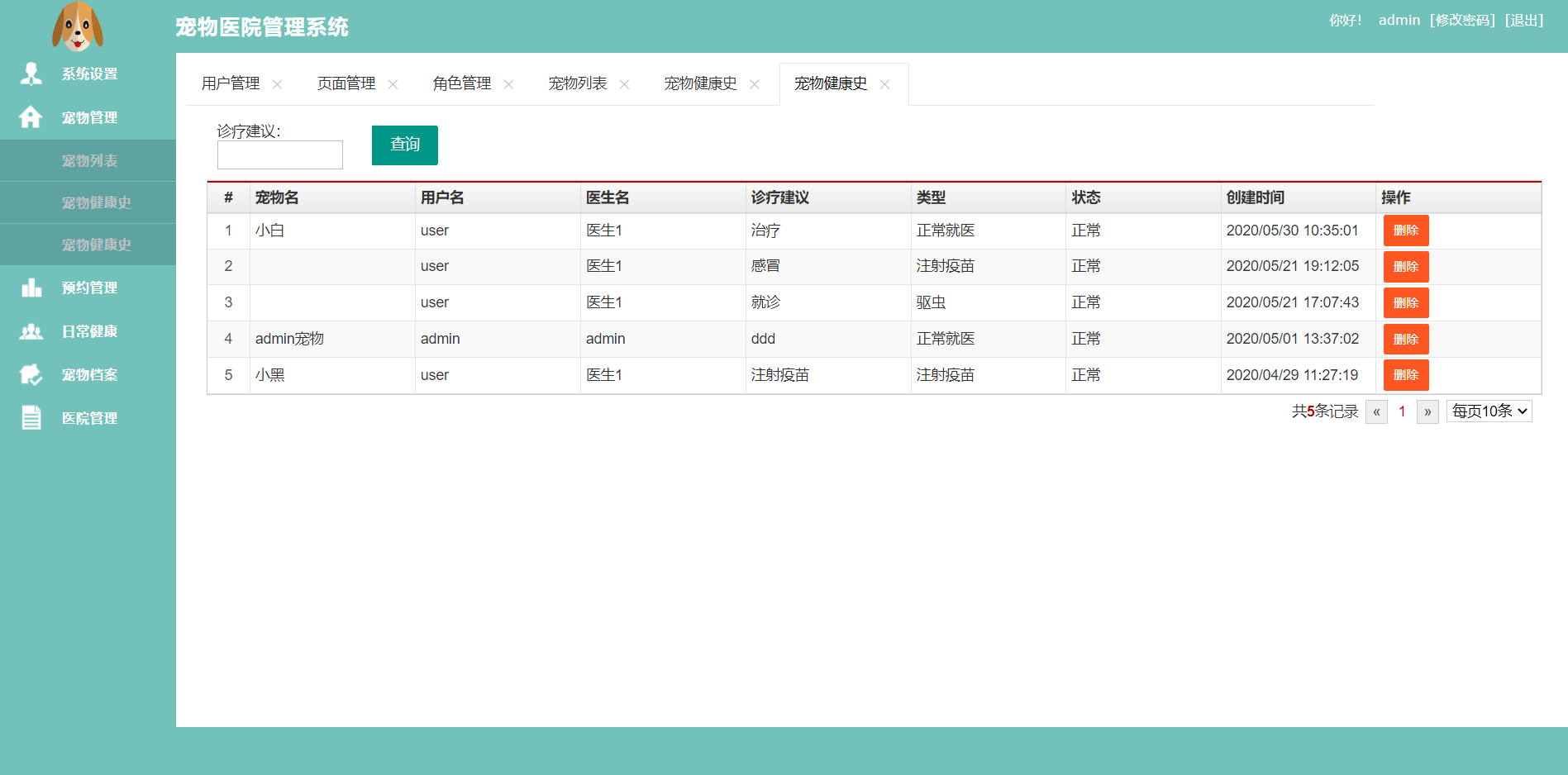 Key words: pet hospital management; identity management; system management; pet management; appointment management; daily health management; SSM framework; Spring; SpringMVC; MyBatis
