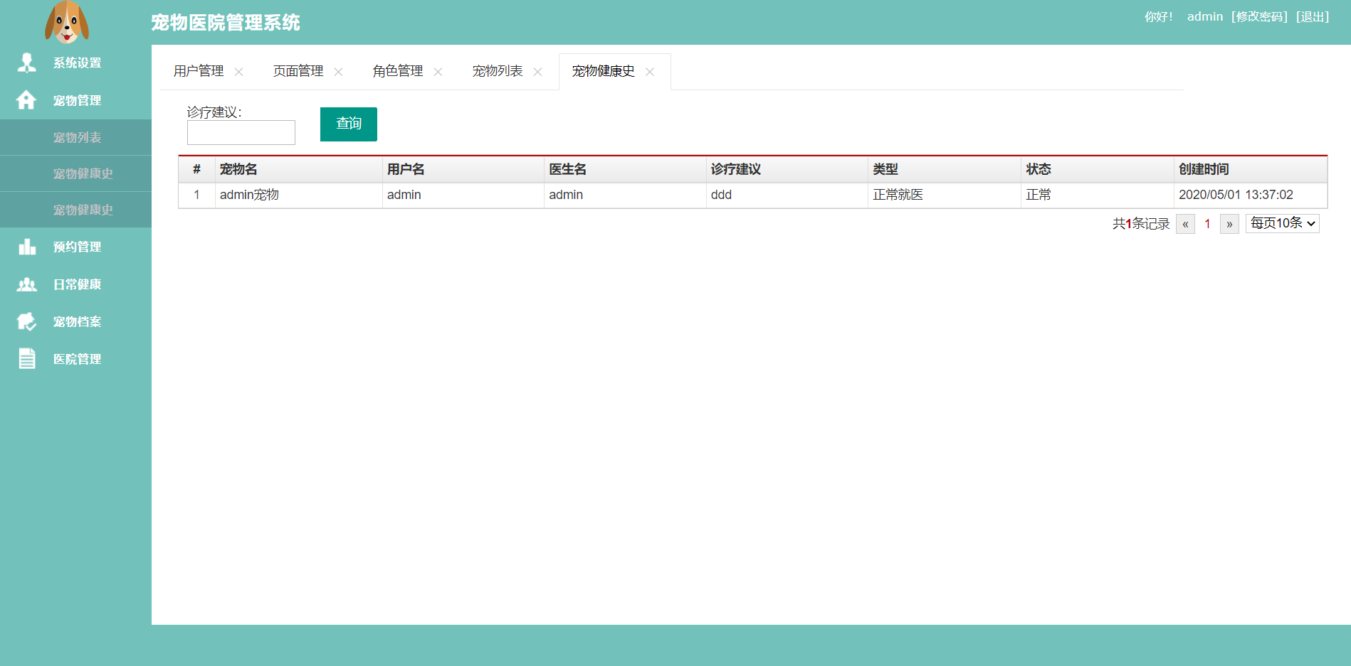 关键词:宠物医院管理;身份管理;系统管理;宠物管理;预约管理;日常健康管理;SSM框架;Spring;SpringMVC;MyBatis