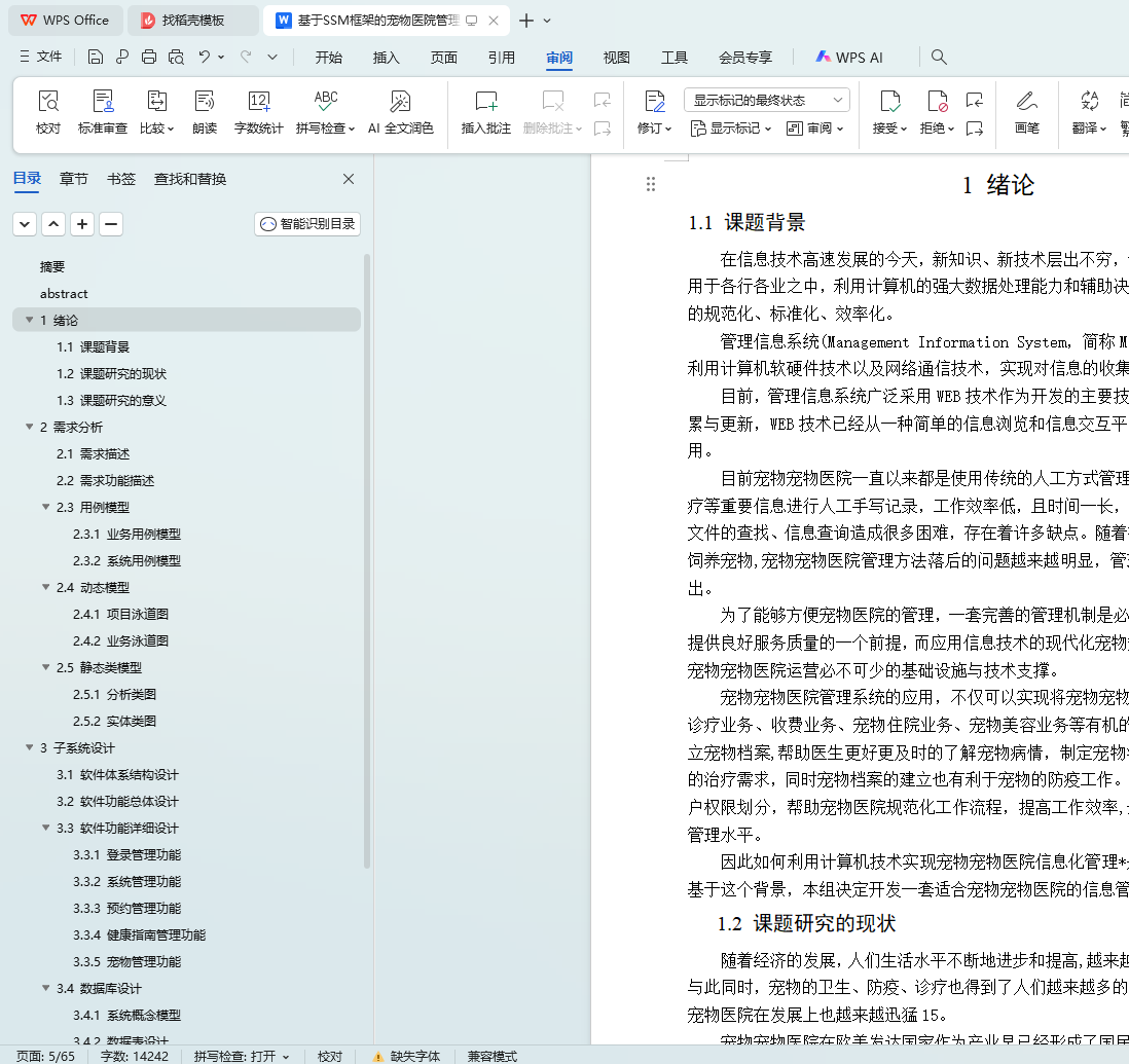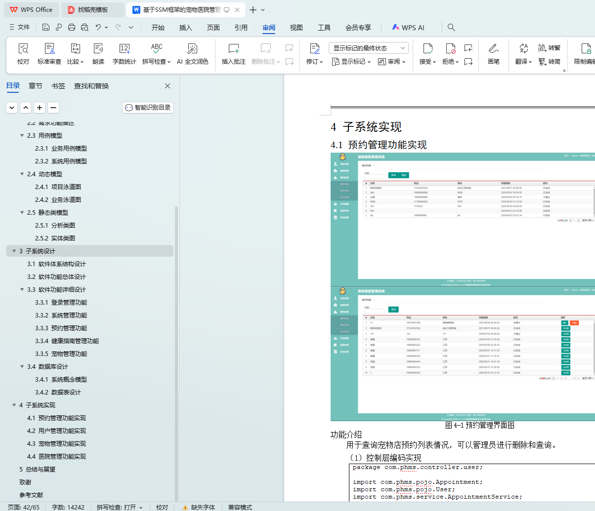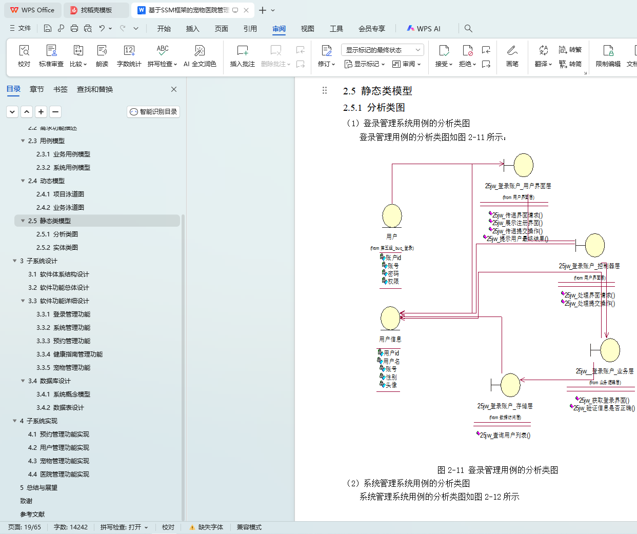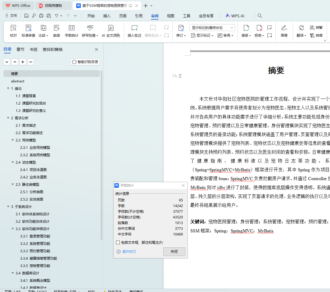 本文针对华阳社区宠物医院的管理工作流程,设计并实现了一个宠物医院管理系统。系统根据用户需求将使用者划分为宠物医生、宠物主人以及系统管理人员三类角色,并对各类用户的具体功能需求进行了详细分析。系统主要功能包括身份管理、系统管理、宠物管理、预约管理以及日常健康管理。身份管理模块实现了宠物医生、宠物主人以及系统管理员的登录功能;系统管理模块涵盖了用户管理、页面管理以及角色管理等功能;宠物管理模块提供了宠物列表、宠物状态以及宠物健康史等信息的查看和管理;预约管理模块支持预约列表、预约状态以及医生时间的查看和安排;日常健康管理模块则包含了健康指南、健康标准以及宠物日志等功能。系统采用SSM(Spring+SpringMVC+MyBatis)框架进行开发,其中Spring作为项目中的粘合剂,负责装配和管理bean;SpringMVC负责拦截用户请求,并通过Controller执行相应的操作;MyBatis则对jdbc进行了封装,使得数据库底层操作变得透明。系统通过控制器、业务层、持久层的分层架构,实现了页面请求的处理、业务逻辑的执行以及与数据库的交互,最终将结果展示给用户。