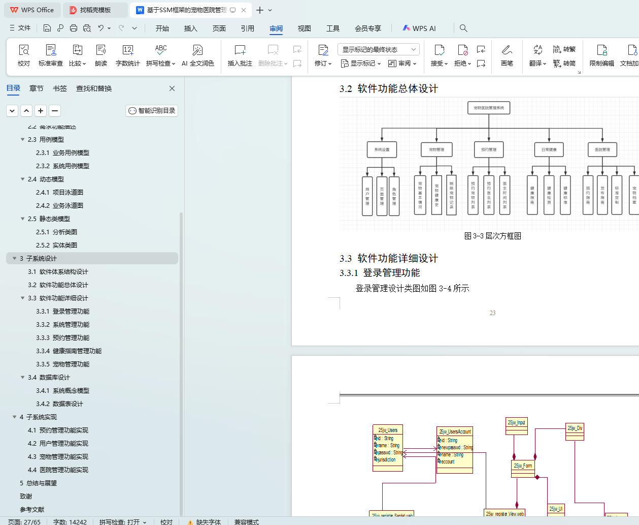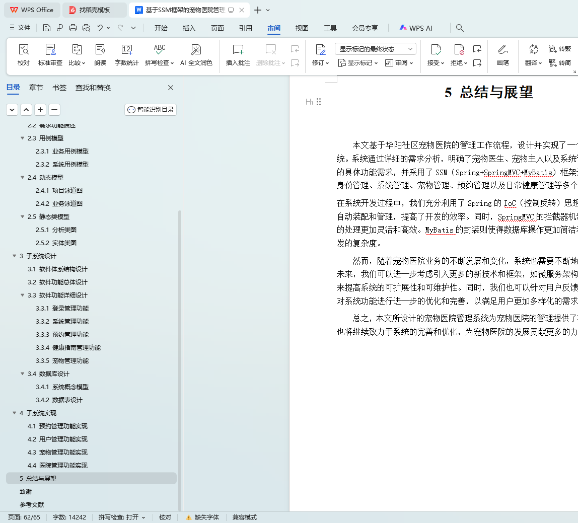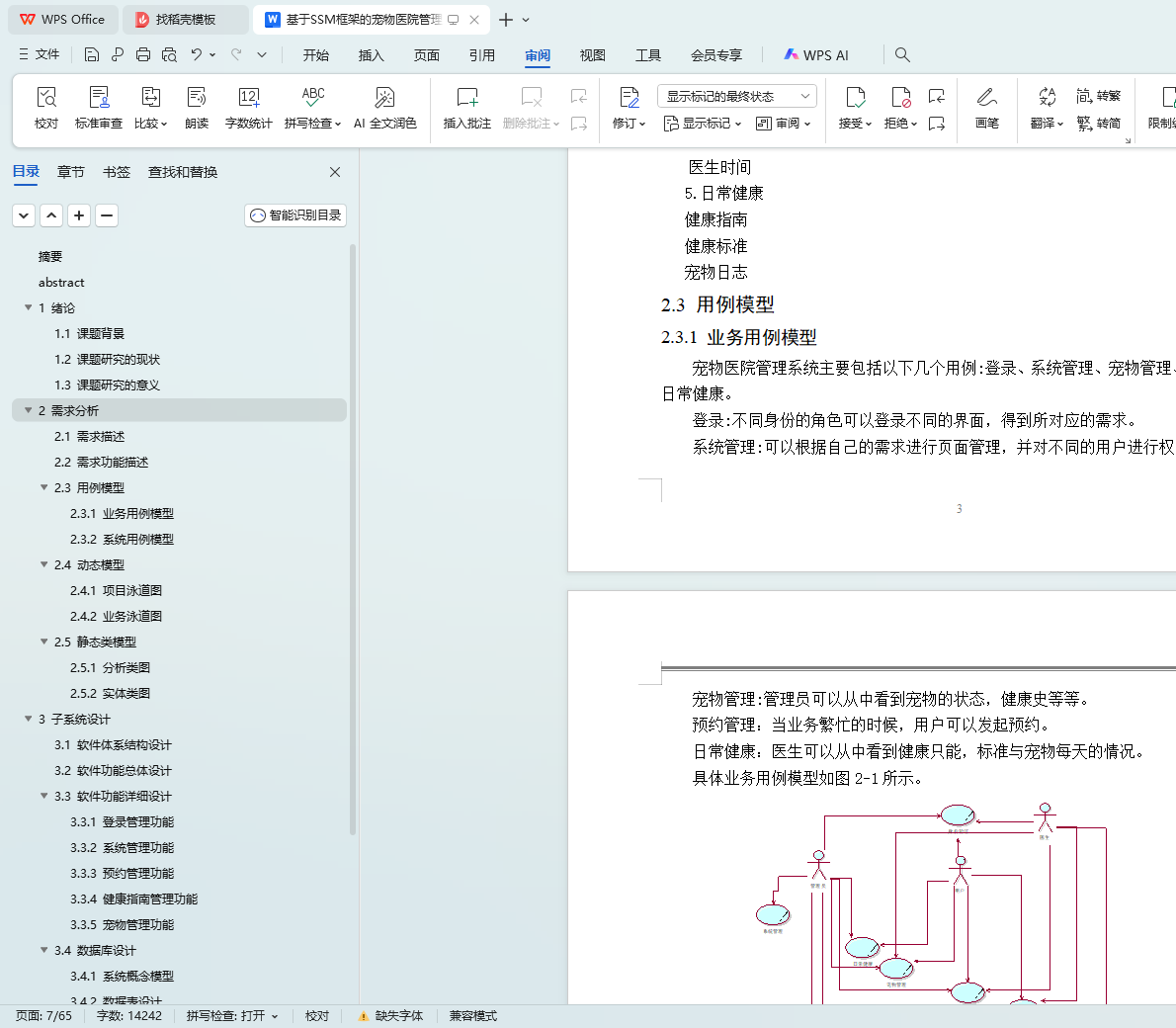 本文针对华阳社区宠物医院的管理工作流程,设计并实现了一个宠物医院管理系统。系统根据用户需求将使用者划分为宠物医生、宠物主人以及系统管理人员三类角色,并对各类用户的具体功能需求进行了详细分析。系统主要功能包括身份管理、系统管理、宠物管理、预约管理以及日常健康管理。身份管理模块实现了宠物医生、宠物主人以及系统管理员的登录功能;系统管理模块涵盖了用户管理、页面管理以及角色管理等功能;宠物管理模块提供了宠物列表、宠物状态以及宠物健康史等信息的查看和管理;预约管理模块支持预约列表、预约状态以及医生时间的查看和安排;日常健康管理模块则包含了健康指南、健康标准以及宠物日志等功能。系统采用SSM(Spring+SpringMVC+MyBatis)框架进行开发,其中Spring作为项目中的粘合剂,负责装配和管理bean;SpringMVC负责拦截用户请求,并通过Controller执行相应的操作;MyBatis则对jdbc进行了封装,使得数据库底层操作变得透明。系统通过控制器、业务层、持久层的分层架构,实现了页面请求的处理、业务逻辑的执行以及与数据库的交互,最终将结果展示给用户。