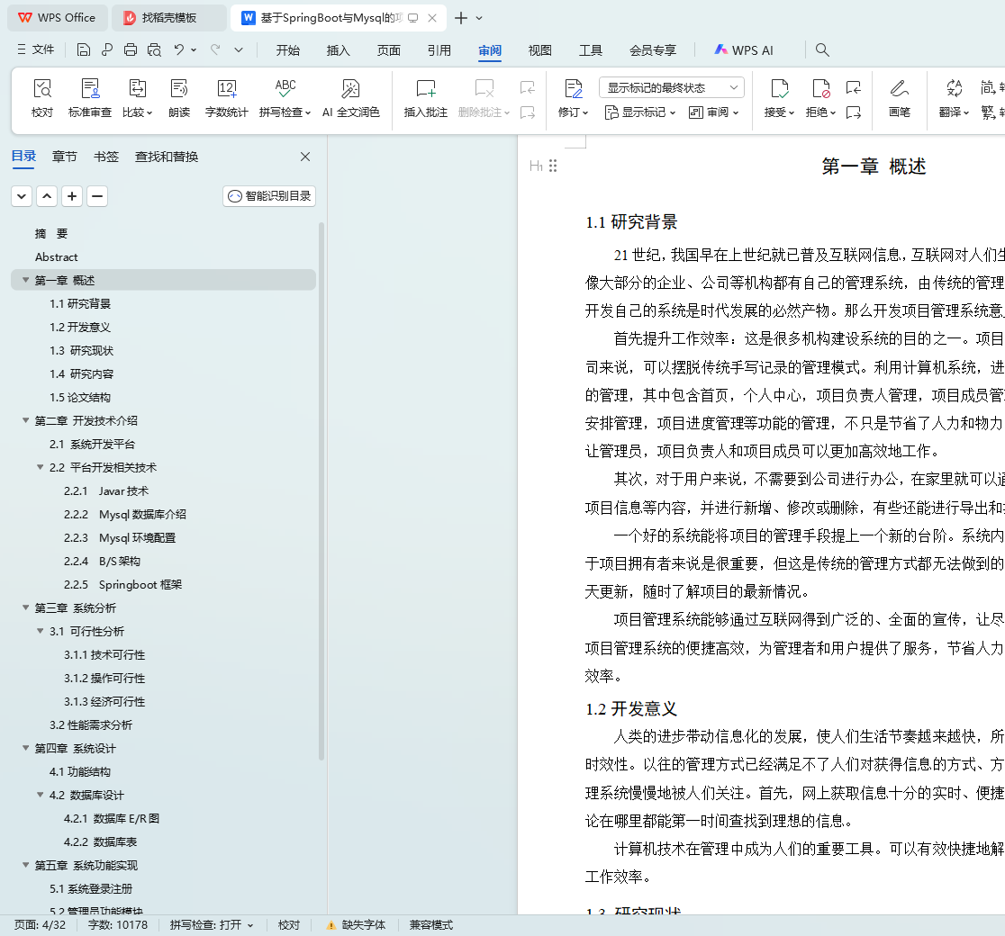 随着信息技术和网络技术的迅猛进步,人类社会已迈入全新的信息化时代。传统的管理技术手段已难以满足高效、便捷的信息管理需求。为适应这一时代变革,提升管理效率,各类管理系统应运而生,各行各业也纷纷步入信息管理的新纪元。项目管理系统便是这一变革中的重要产物。本文所述项目管理系统遵循了系统设计的标准流程,包括市场调研、需求分析、概要设计、详细设计、编码及测试等关键步骤。该系统基于Java技术、SpringBoot框架、B/S架构以及Mysql数据库进行设计与实现。
