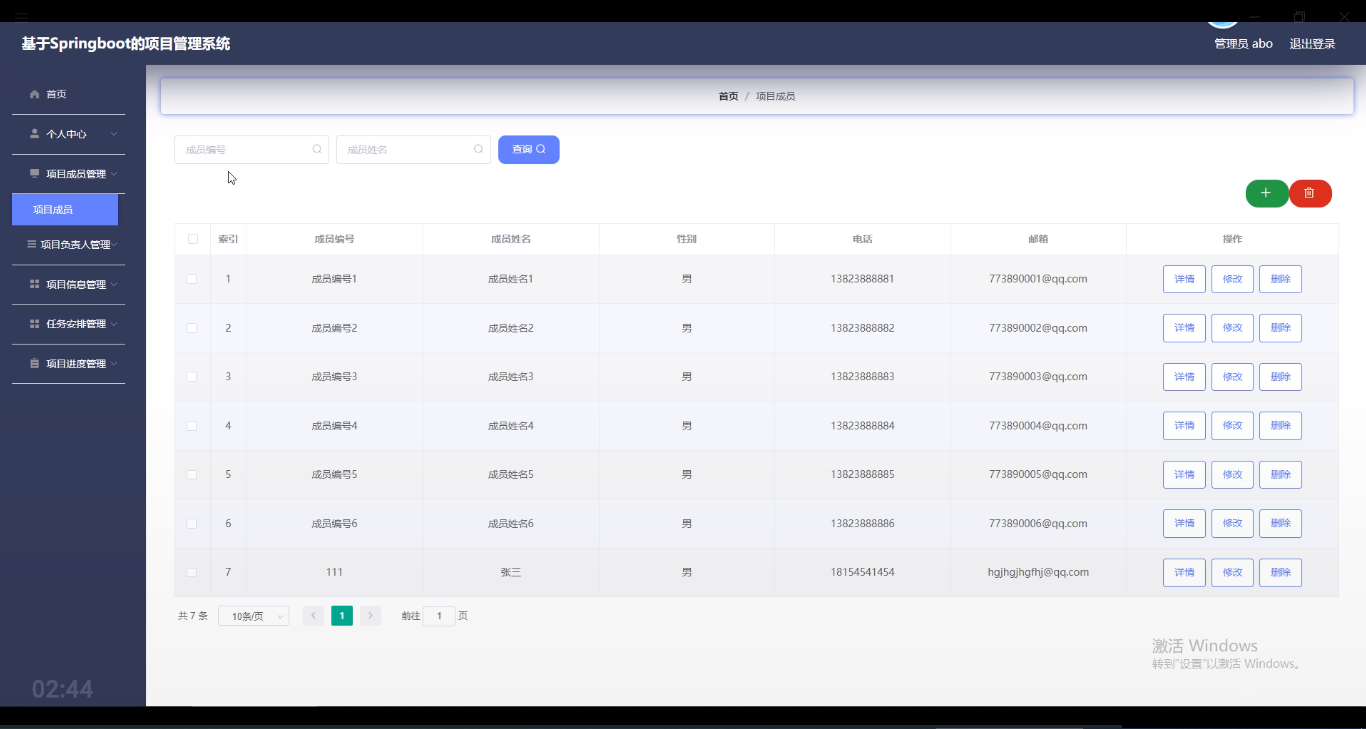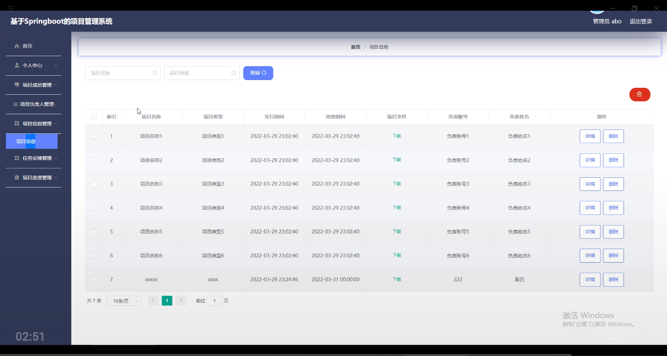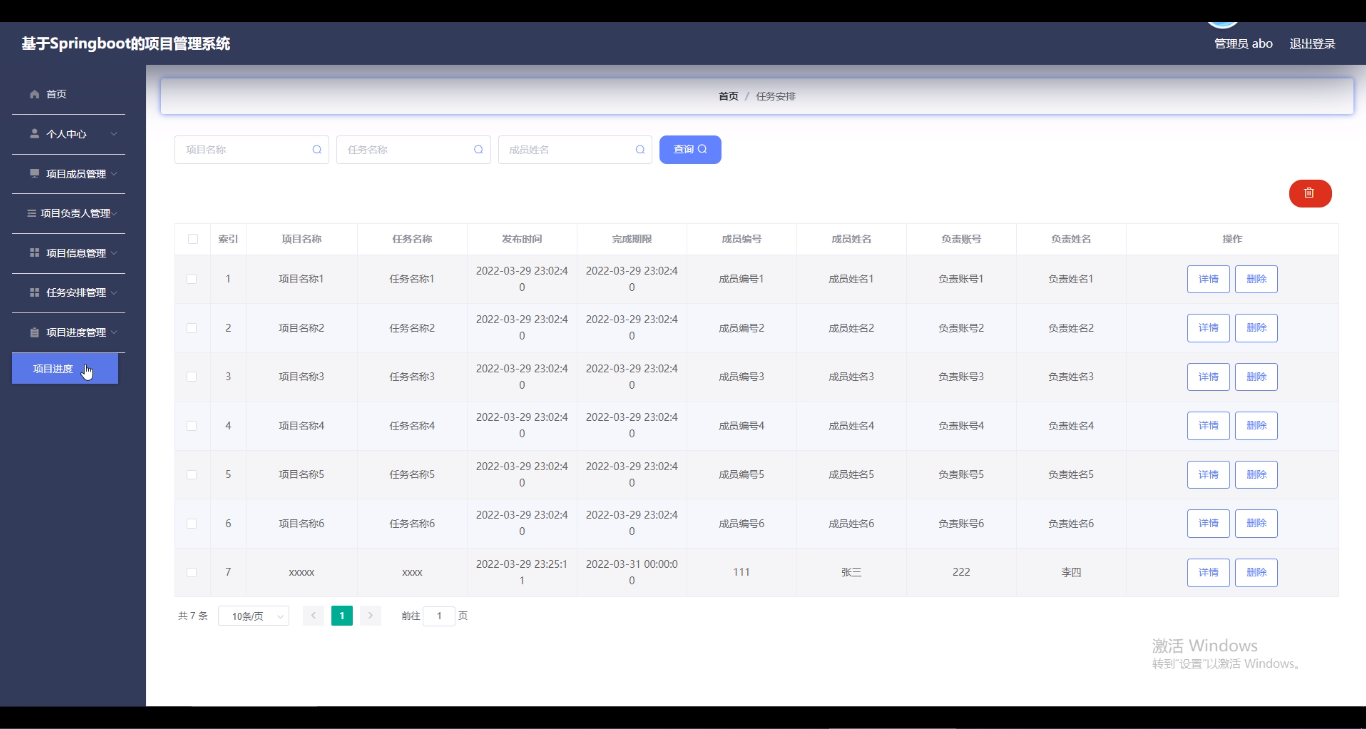Key words: project management system; SpringBoot framework; Java technology; Mysql database; function module