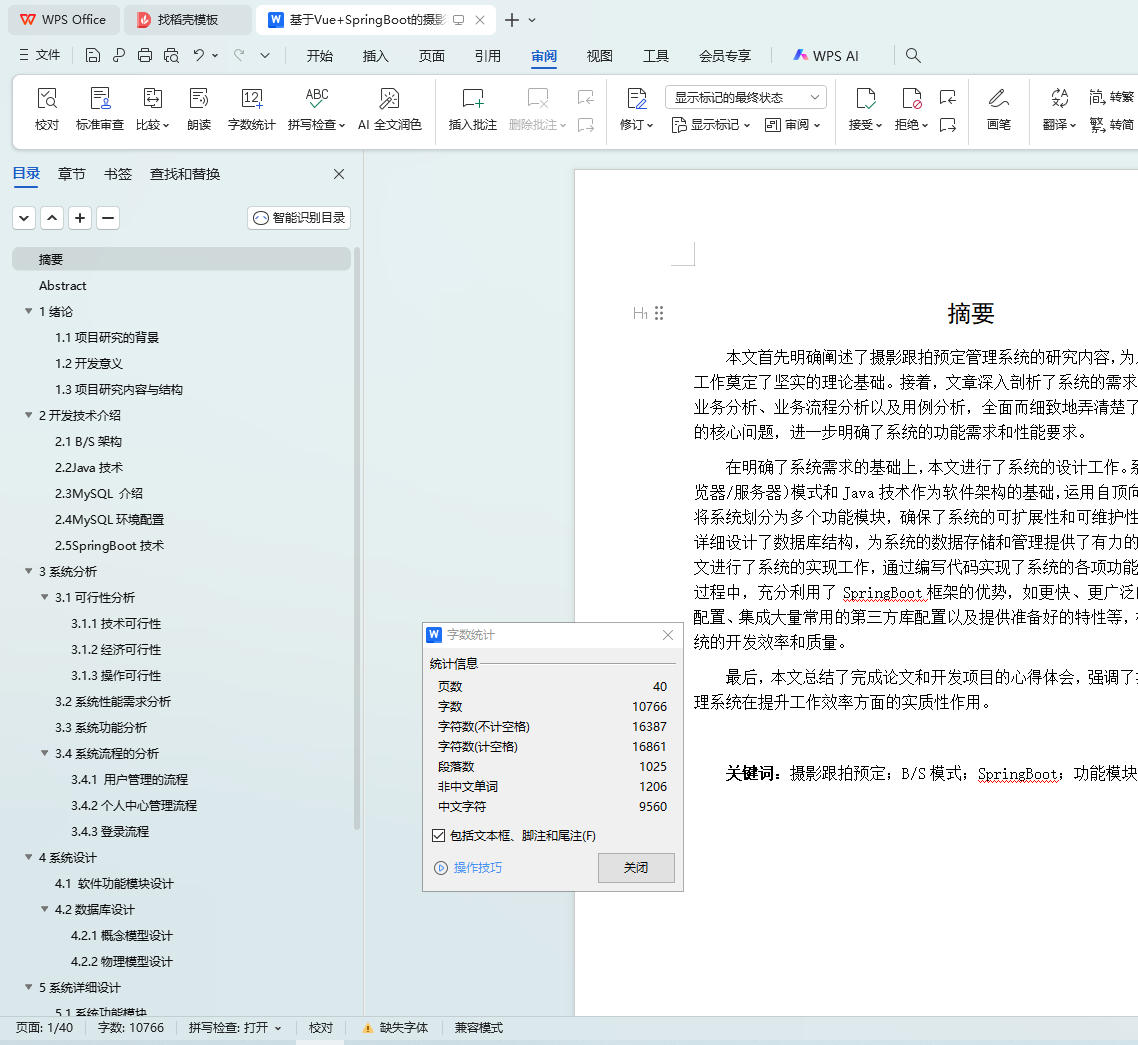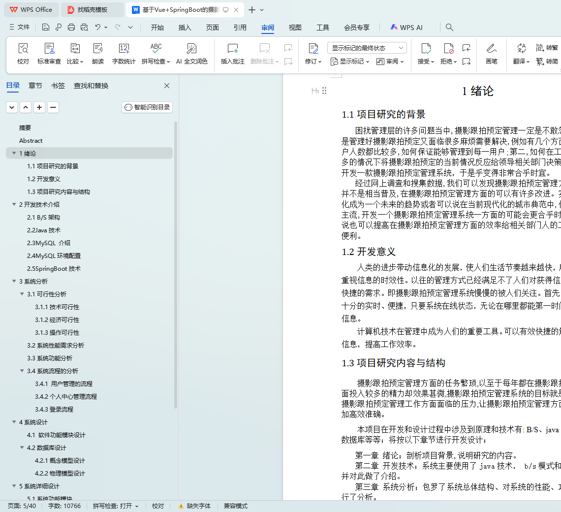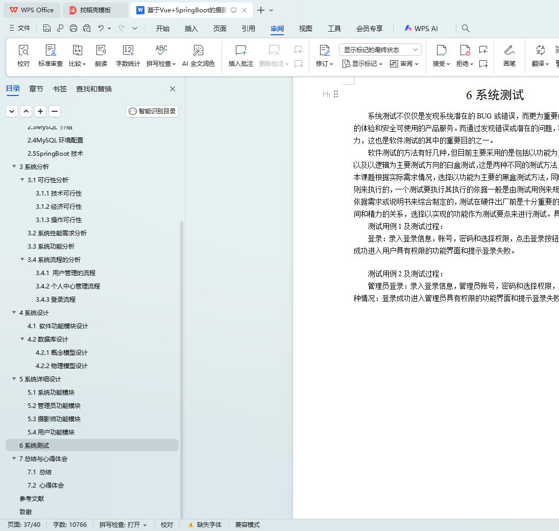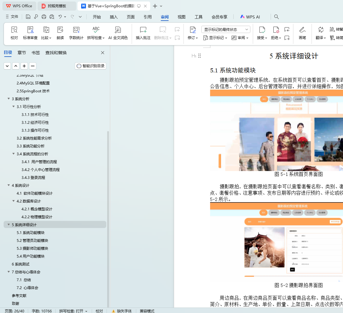 最后,本文总结了完成论文和开发项目的心得体会,强调了摄影跟拍预定管理系统在提升工作效率方面的实质性作用。