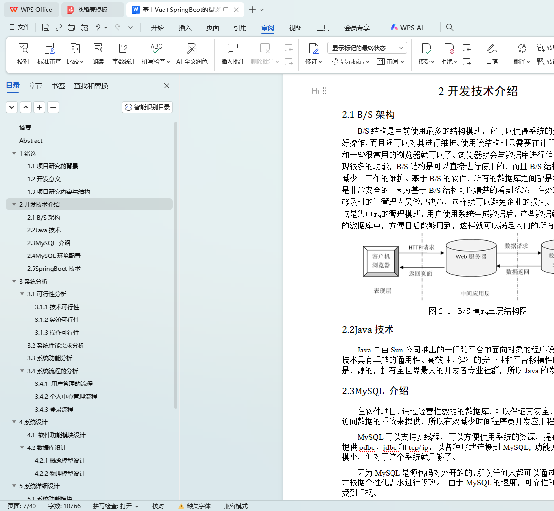 在明确了系统需求的基础上,本文进行了系统的设计工作。系统采用B/S(浏览器/服务器)模式和Java技术作为软件架构的基础,运用自顶向下的分层思想,将系统划分为多个功能模块,确保了系统的可扩展性和可维护性。同时,本文还详细设计了数据库结构,为系统的数据存储和管理提供了有力的支持。随后,本文进行了系统的实现工作,通过编写代码实现了系统的各项功能。在系统的开发过程中,充分利用了SpringBoot框架的优势,如更快、更广泛的入门体验、零配置、集成大量常用的第三方库配置以及提供准备好的特性等,极大地提高了系统的开发效率和质量。