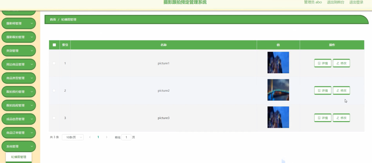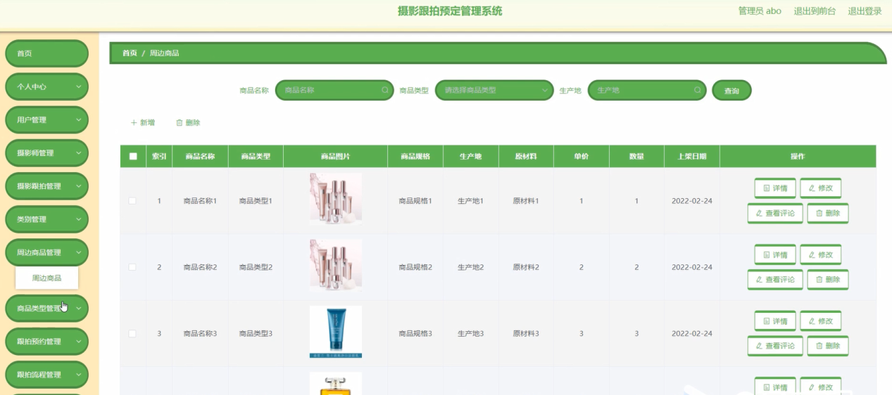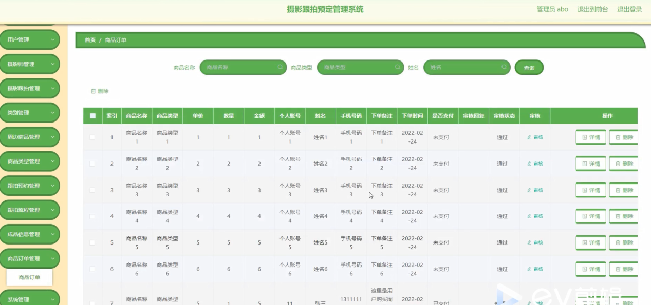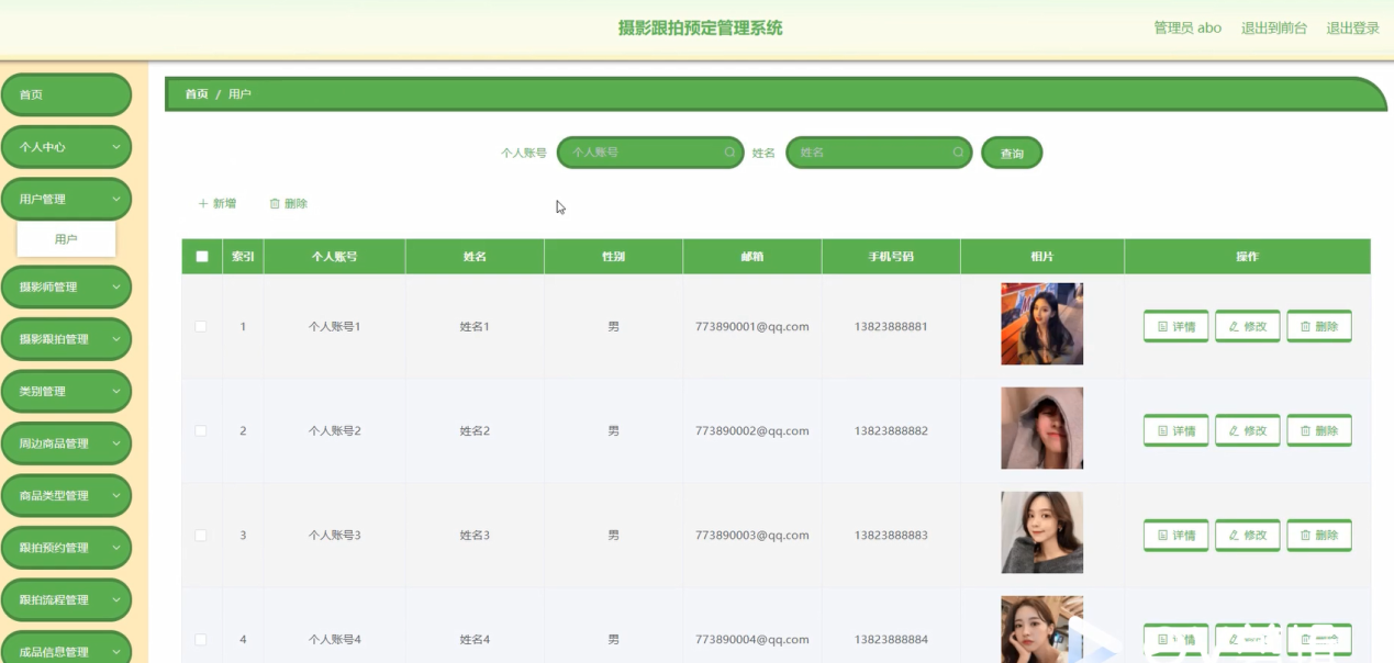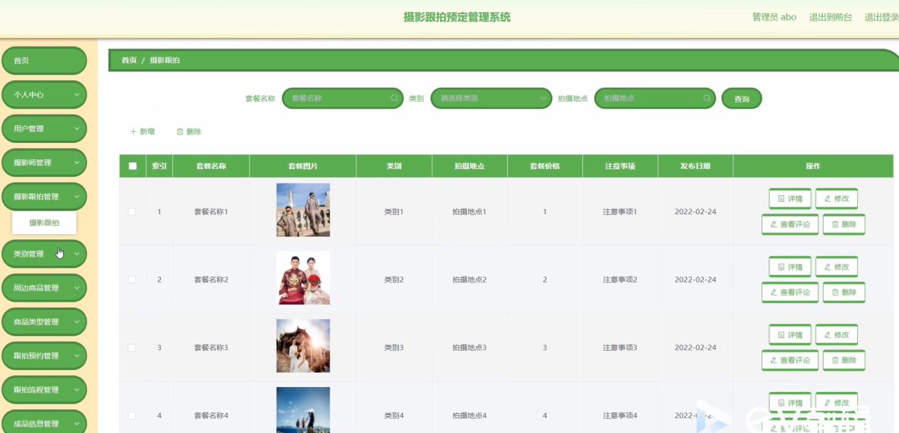 Key words: photography and shooting booking; B / S mode; SpringBoot; function module; database design