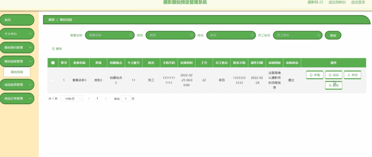 Finally, this paper summarizes the experience of completing the paper and the development project, emphasizing the substantive role of the photography and photography reservation management system in improving work efficiency.