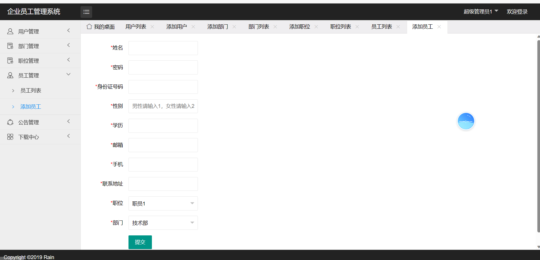 4.2.2 员工管理功能模块