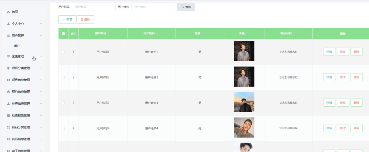 本研究从系统需求、结构设计、数据库构建等多个方面入手,详细阐述了系统的开发过程。系统分为管理员、医生和用户三个角色,分别实现了不同的功能。通过Java编程语言和MySQL数据库的结合,系统实现了全部预设功能。随后,我们对系统进行了全面的测试,包括漏洞检测和用户权限验证,以确保系统达到相关标准并满足实际应用需求。