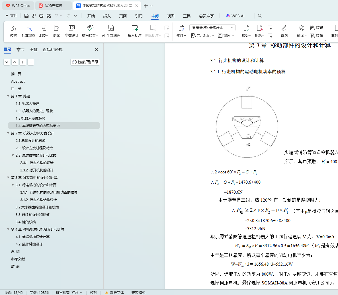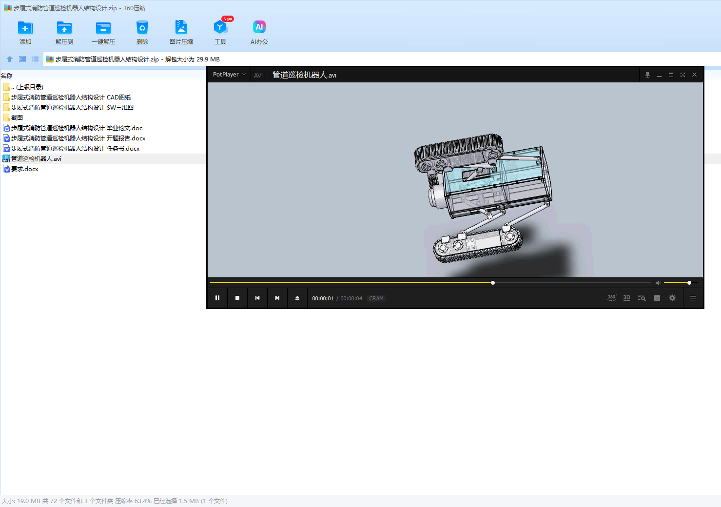 本选题的目的在于,通过深入研究和设计,开发出一套能够适应消防管道复杂环境、具备自主行走和巡检能力的机器人系统。该系统将结合国内外研究现状,对比分析不同技术的优缺点,制定出详细的时间规划表,明确各阶段的任务和时间节点。在机械设计方面,将确保整体结构符合使用要求,主要部件设计有必要的公式推导与计算,以保证机器人的稳定性和可靠性。同时,将绘制规范的图纸,准确标注尺寸和注释说明,以确保图纸的规范性、准确性和可读性。此外,还将构建准确的三维模型,反映设计对象的尺寸、形状和结构,确保各部件之间的比例关系正确,为后续的生产和制造提供有力支持。