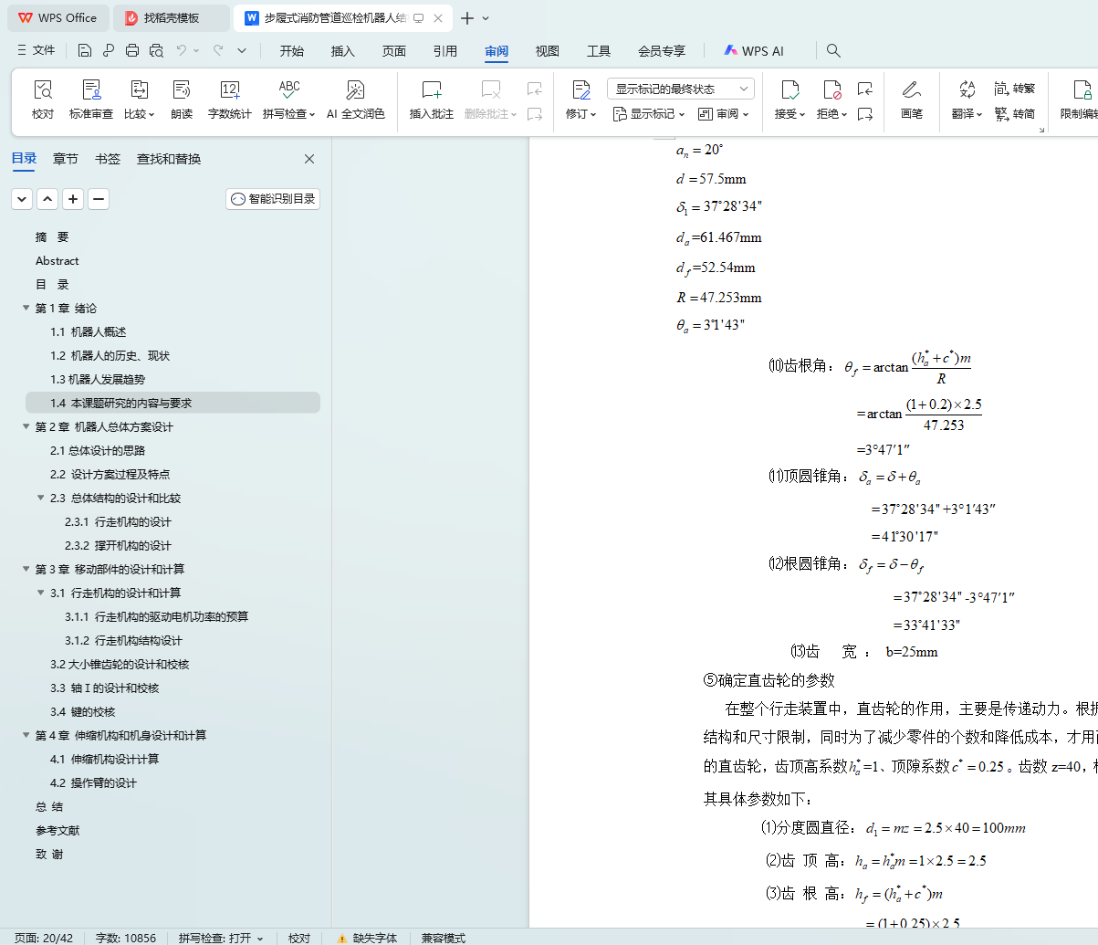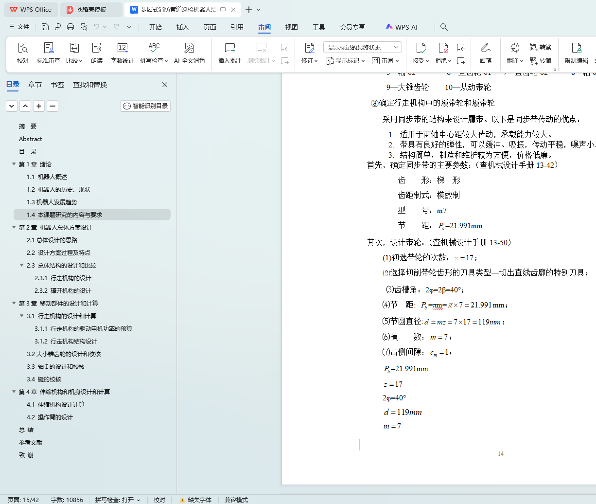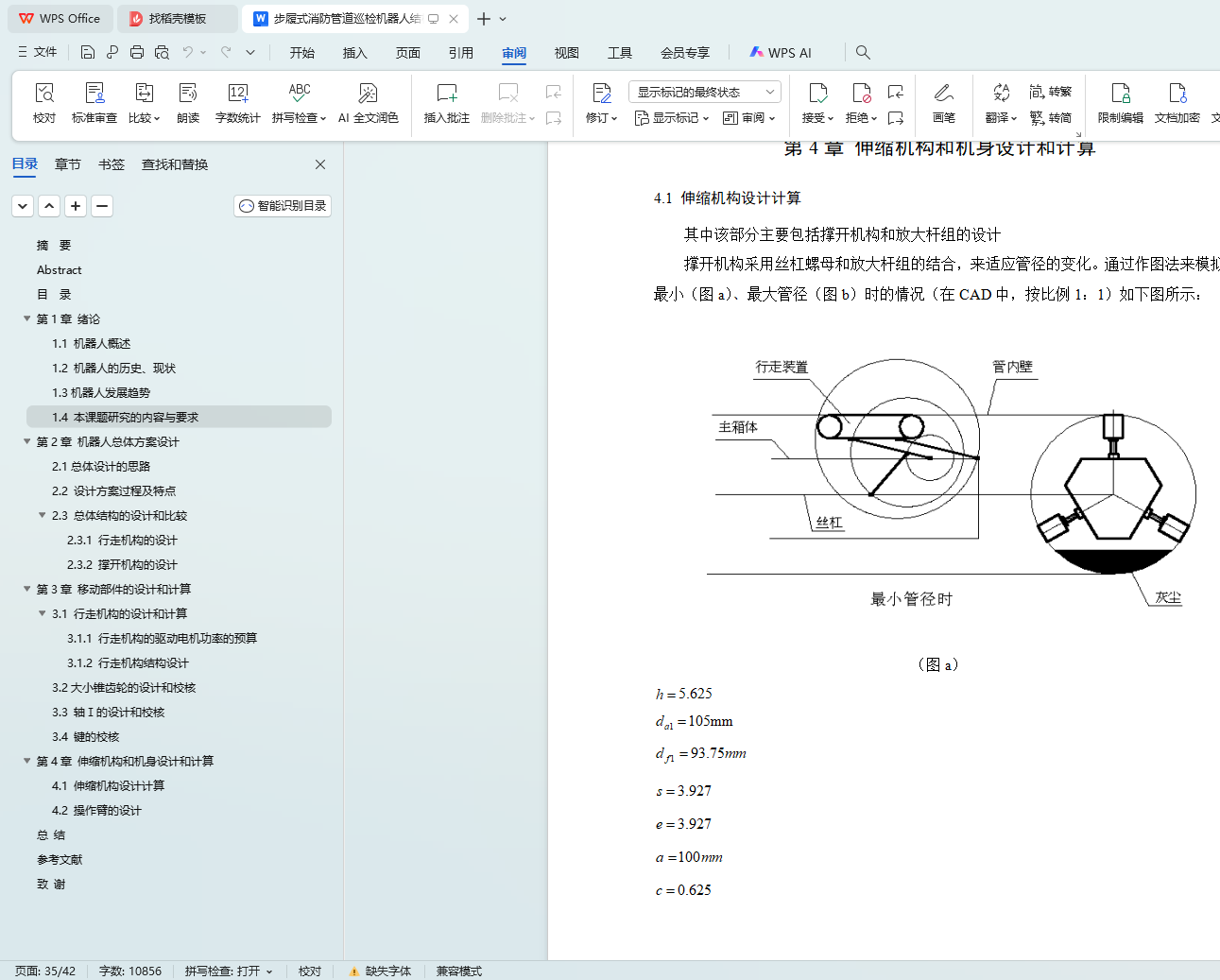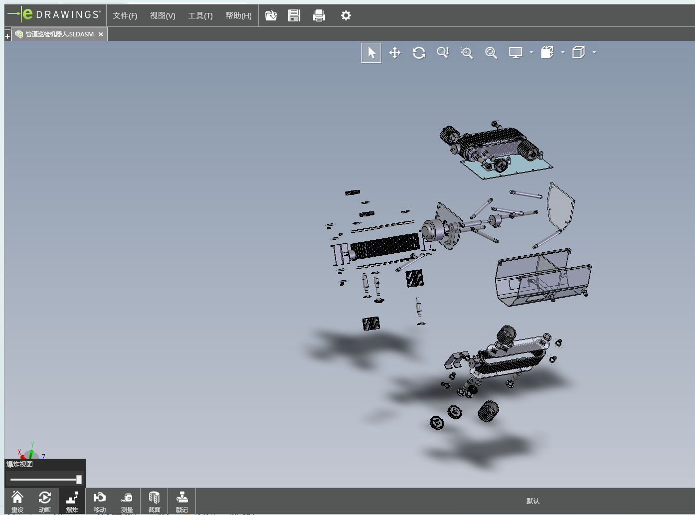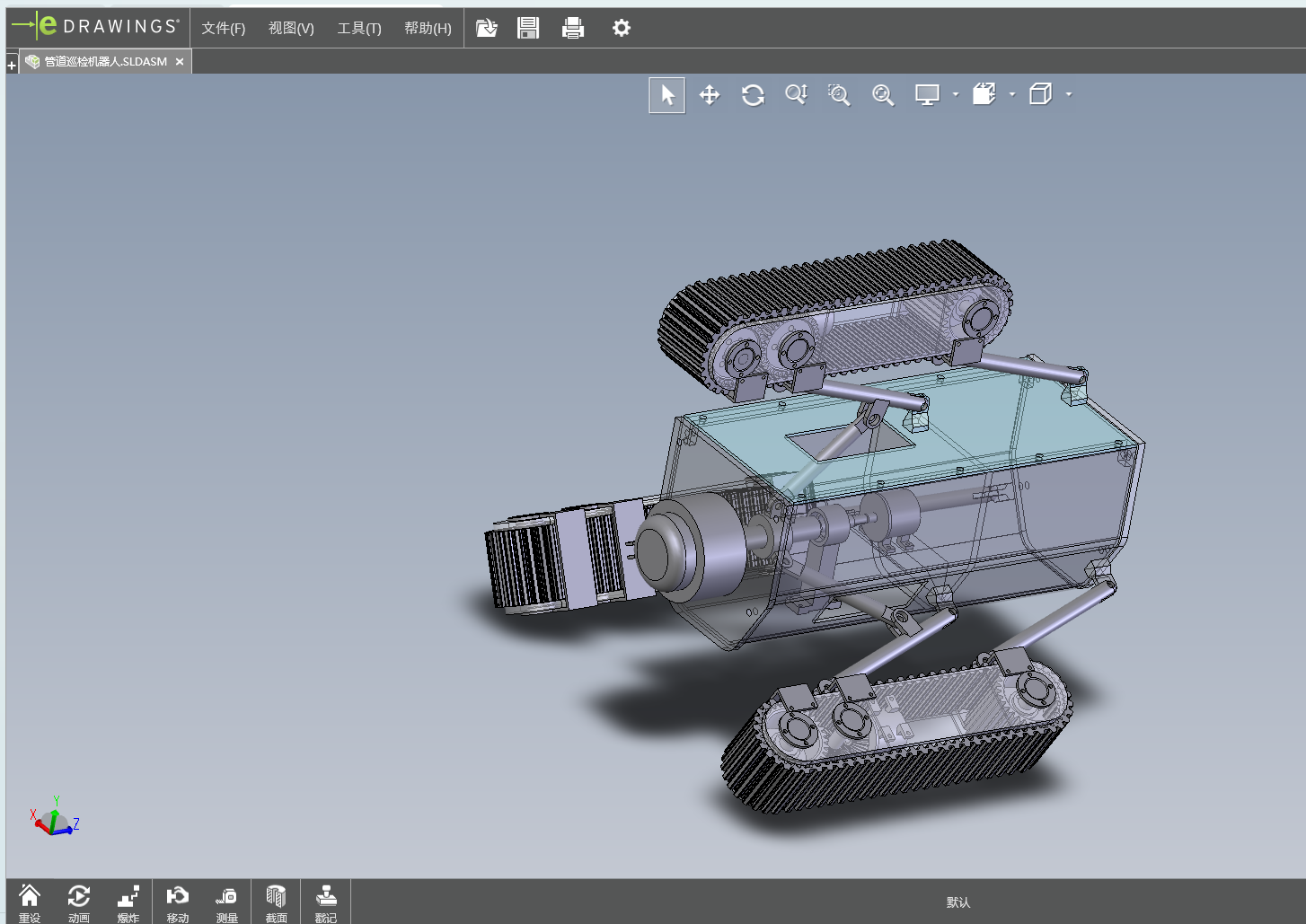 The purpose of this topic is to develop a robot system that can adapt to the complex environment of the fire pipeline and walk and inspect independently through in-depth research and design. The system will combine the current status of research at home and abroad, compare and analyze the advantages and disadvantages of different technologies, formulate a detailed time planning table, and clarify the tasks and time nodes of each stage. In terms of mechanical design, it will ensure that the overall structure meets the requirements of use, and derive and calculate the necessary formulas for the main components to ensure the stability and reliability of the robot. At the same time, standard drawings will be drawn with accurate dimensions and notes to ensure the standardization, accuracy and readability of the drawings. In addition, an accurate 3 D model will be built to reflect the size, shape and structure of the design object, to ensure that the proportion between the components is correct, to provide strong support for subsequent production and manufacturing.