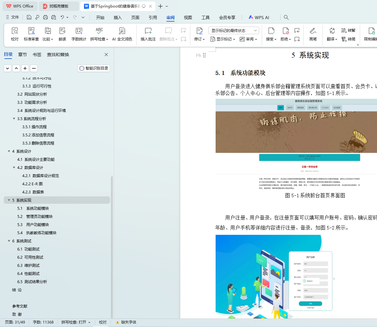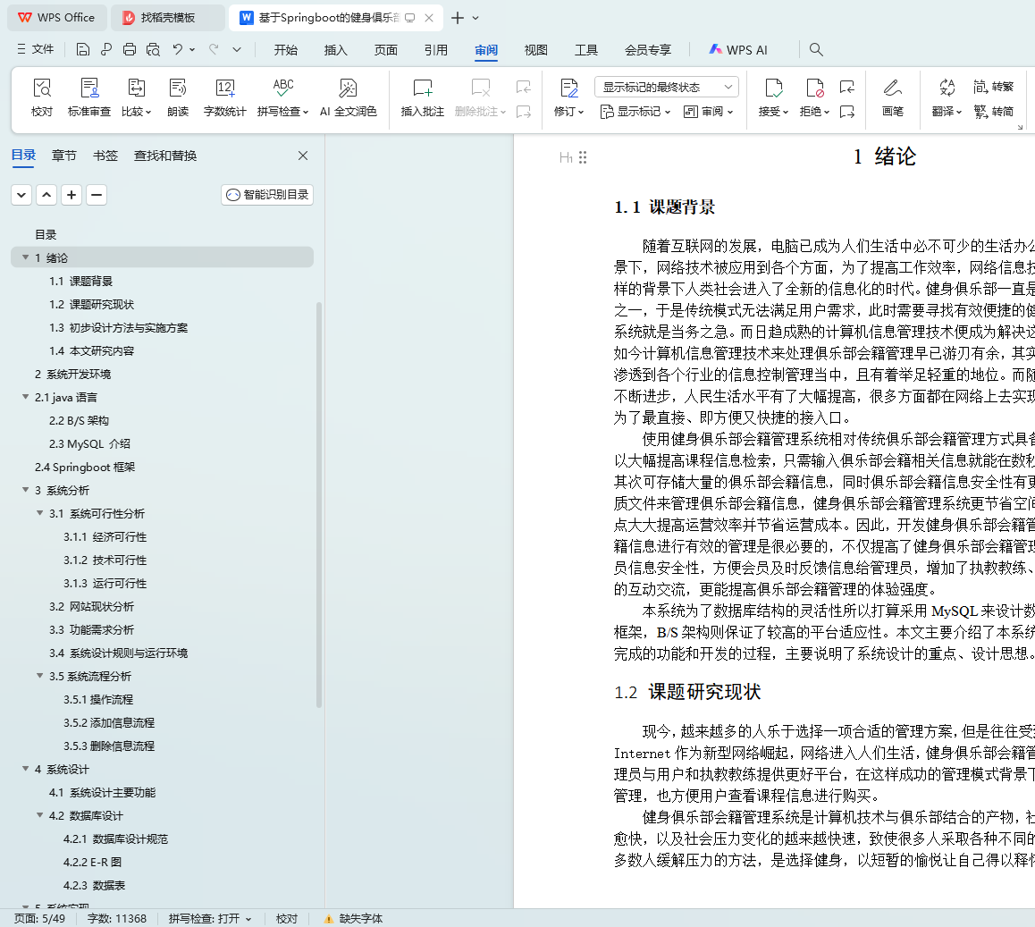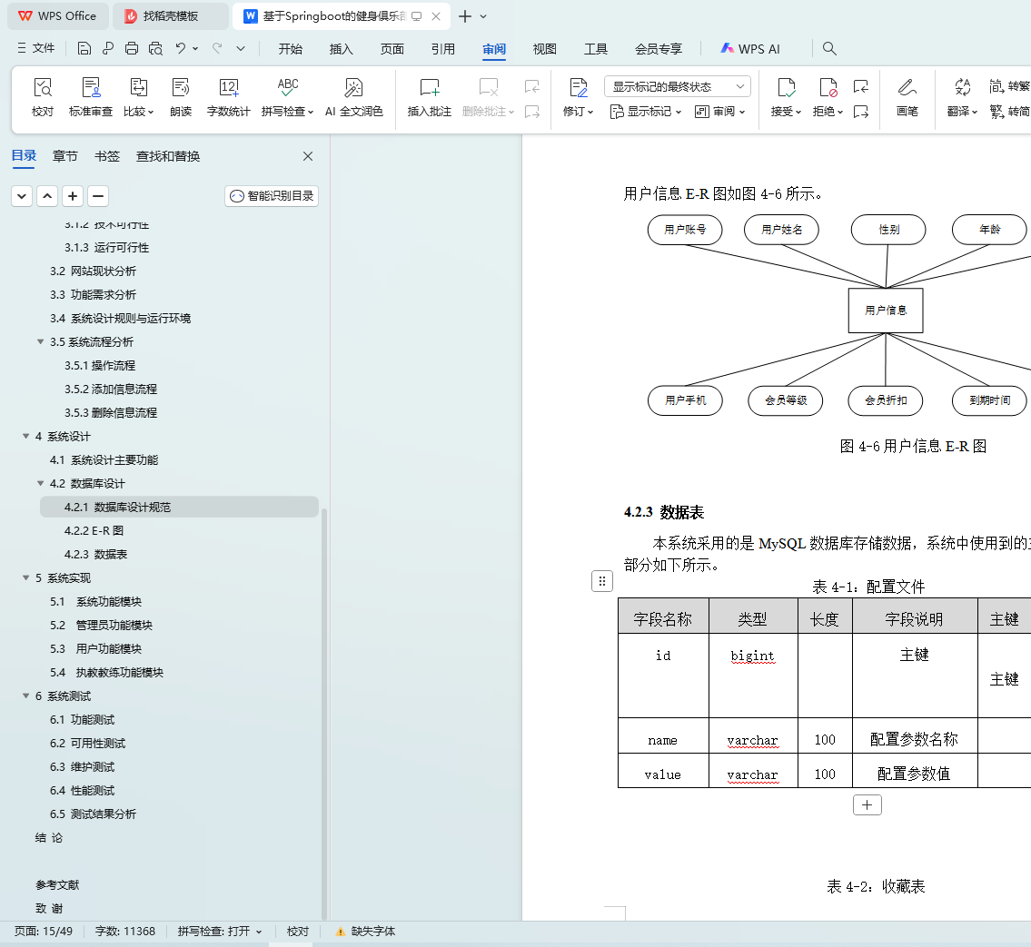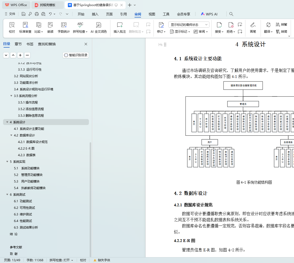系统选用Springboot框架作为开发平台,MySQL作为后台数据库,涵盖了用户管理、执教教练管理、打卡签到、会员卡管理、课程分类、课程信息管理、课程购买、会员卡办理、预约教练、教练评价、健身器材管理、损坏登记等多个功能模块。本文首先概述了健身俱乐部会籍管理系统的技术背景和发展现状,然后按照软件开发流程,选择了合适的开发语言和平台,根据需求分析设计了模块和数据库结构,并绘制了功能模块图、流程图和E-R图。接着,根据设计框架编写了代码,实现了系统的各个功能模块。最后,对系统进行了功能测试、单元测试和性能测试,结果表明系统功能完善,运行稳定,无明显缺陷。