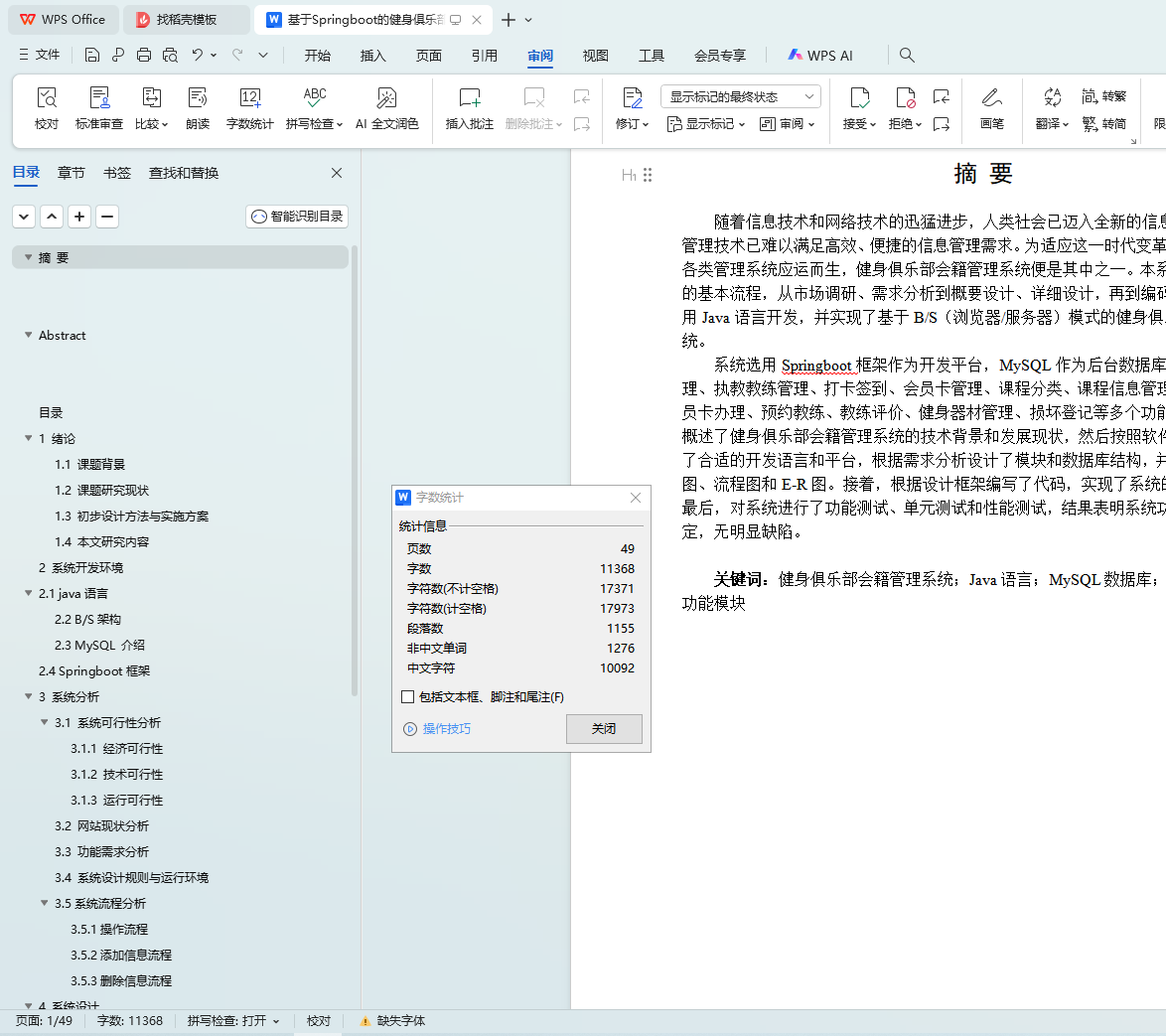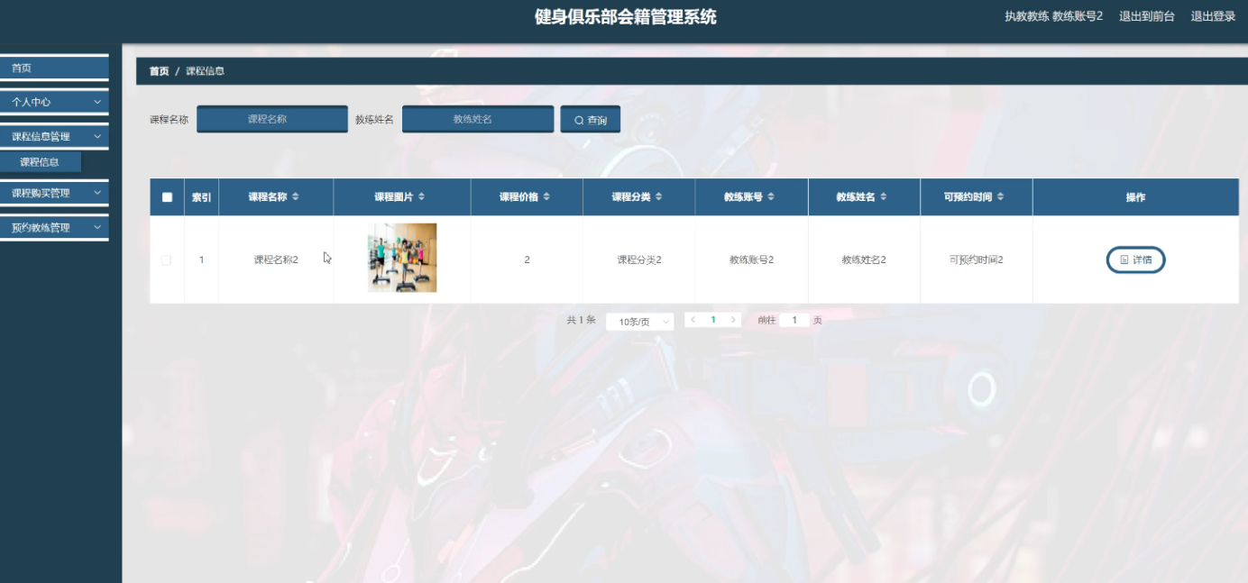 关键词:健身俱乐部会籍管理系统;Java语言;MySQL数据库;Springboot框架;功能模块
