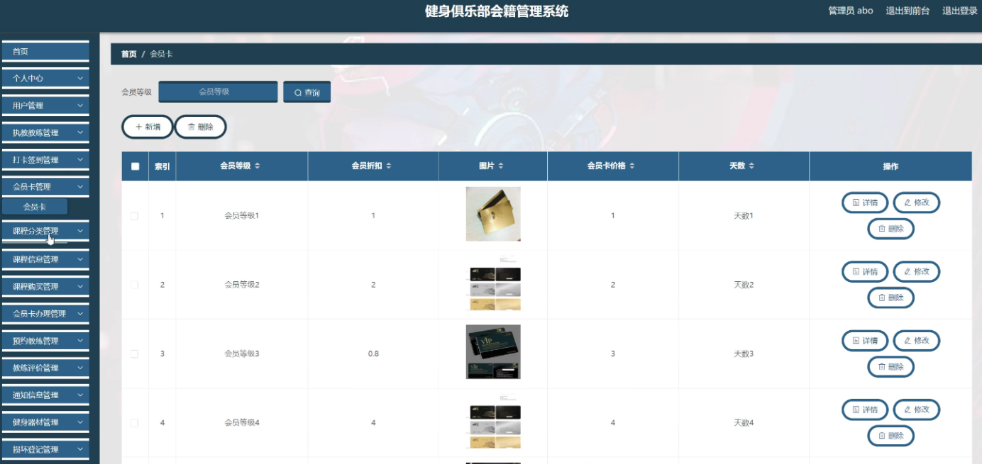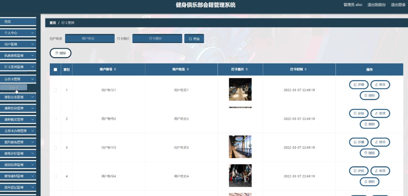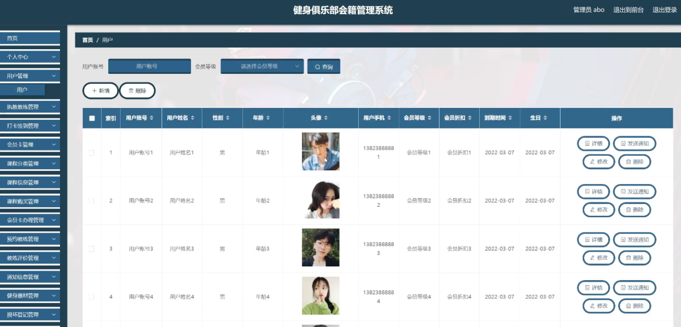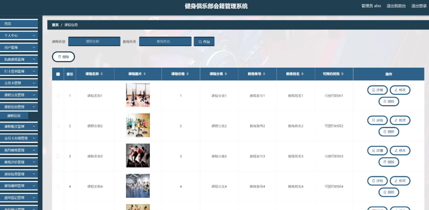 With the rapid progress of information technology and network technology, the human society has entered a new information age, and the traditional management technology has been difficult to meet the needs of efficient and convenient information management. In order to adapt to the change of this era and improve the management efficiency, various kinds of management systems emerge at the historic moment, and the fitness club membership management system is one of them. The system follows the basic process of system design, from market research, demand analysis to summary design, detailed design, and then to coding, testing, the whole process of Java language development, and realizes the fitness club membership management system based on B / S (browser / server) mode.