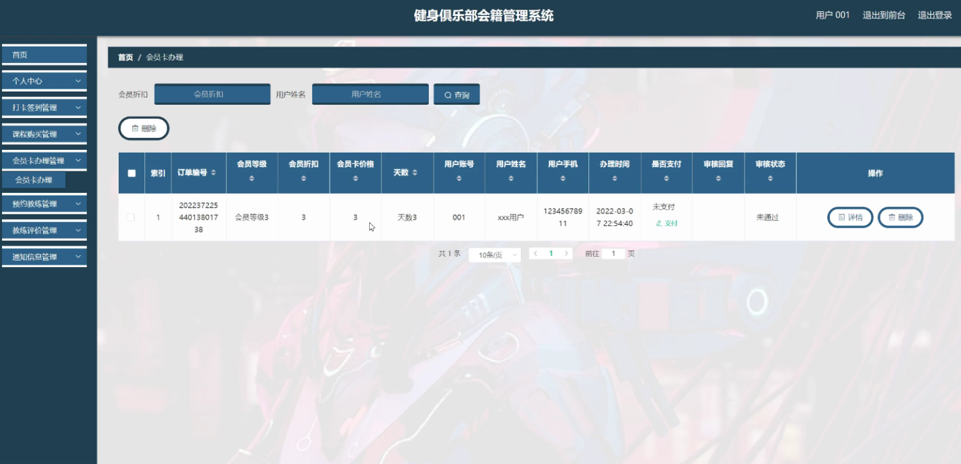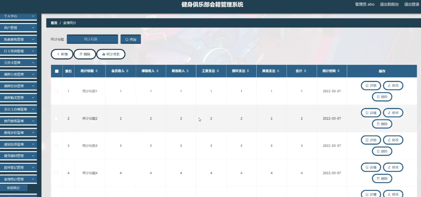 Key words: health club membership management system; Java language; MySQL database; Springboot framework; function module