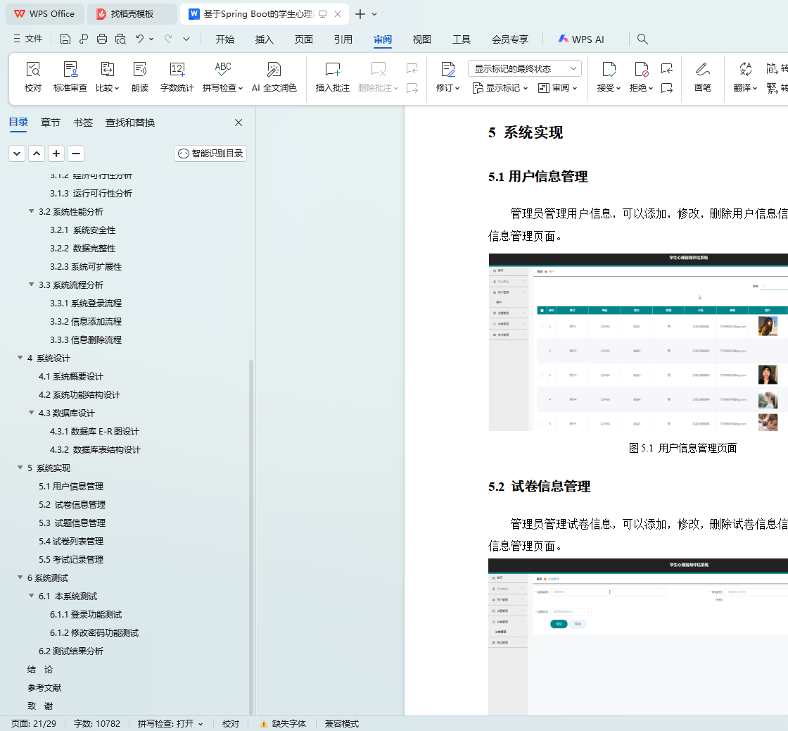In database, we chose the powerful MySQL database to store and manage system data. MySQL database is efficient, stable and easy to use, and can meet the requirements of the system for data storage and management. After the system is put into use, the time for managers to process information is greatly shortened, and it only takes ten seconds to complete information editing and other operations. This not only improves the work efficiency, but also promotes the paperless office process of students' psychological counseling and evaluation information management.