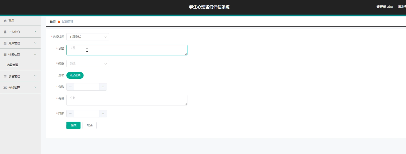 传统的学生心理咨询评估信息管理方式已难以满足当前需求,其效率低下且易出错。为了解决这些问题,我们开发了一套基于网络信息技术的学生心理咨询评估系统。该系统设有管理员和用户两种角色,管理员负责管理中心、用户信息、试题库、试卷生成及考试安排等,而用户则可以通过系统参加考试。