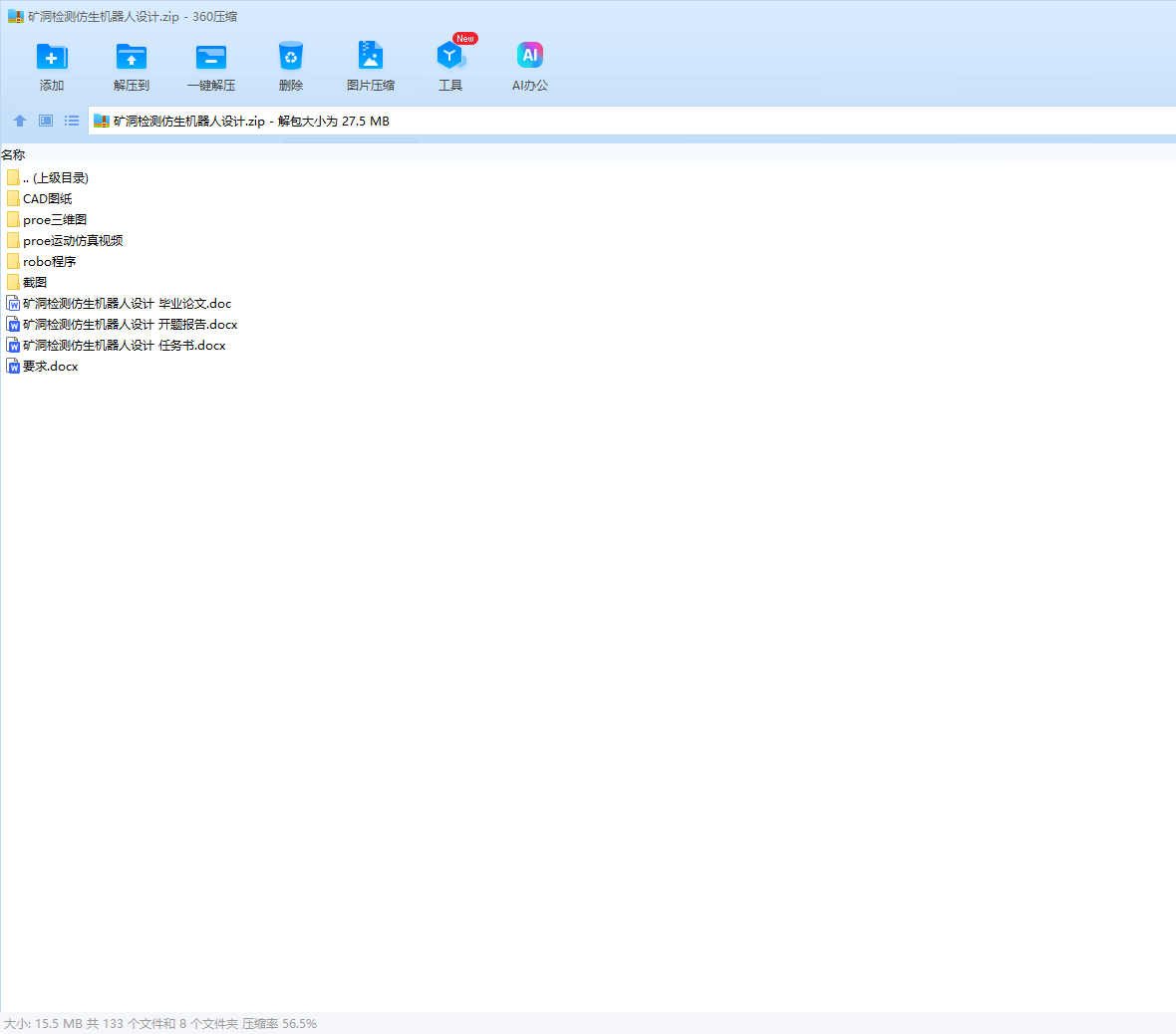 关键词:矿洞检测仿生机器人,结构,控制,编程,运动仿真