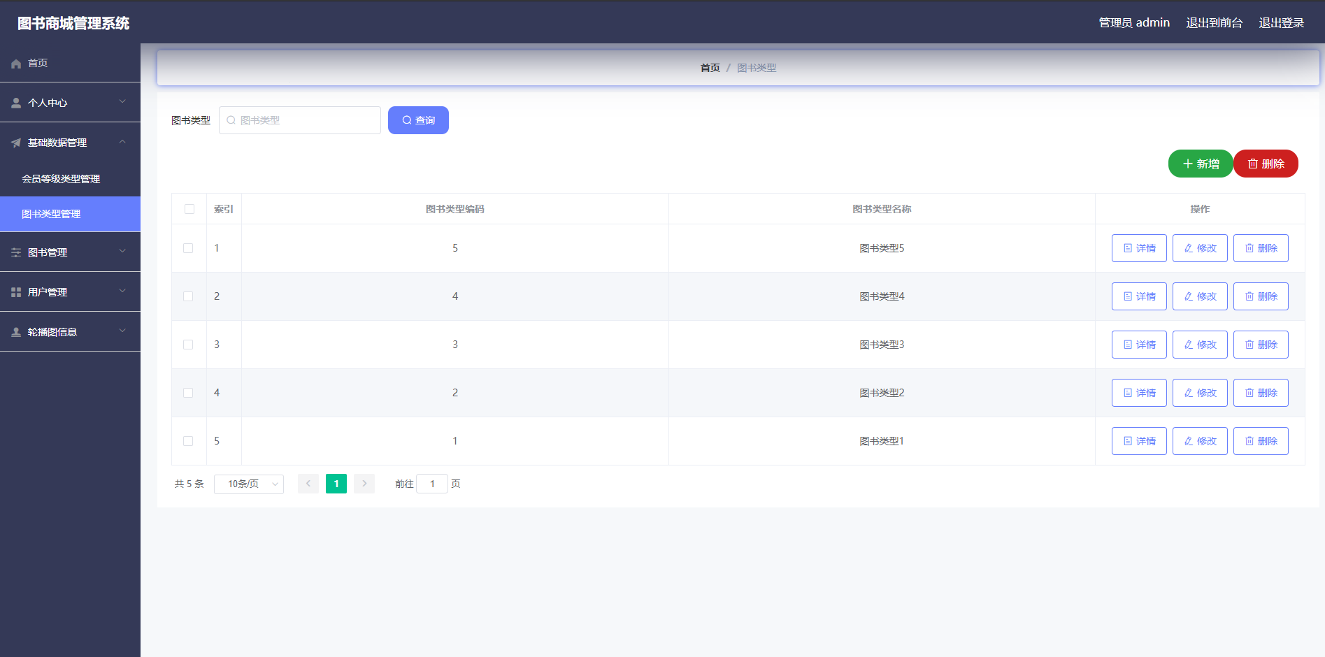 5.1.3图书类型管理