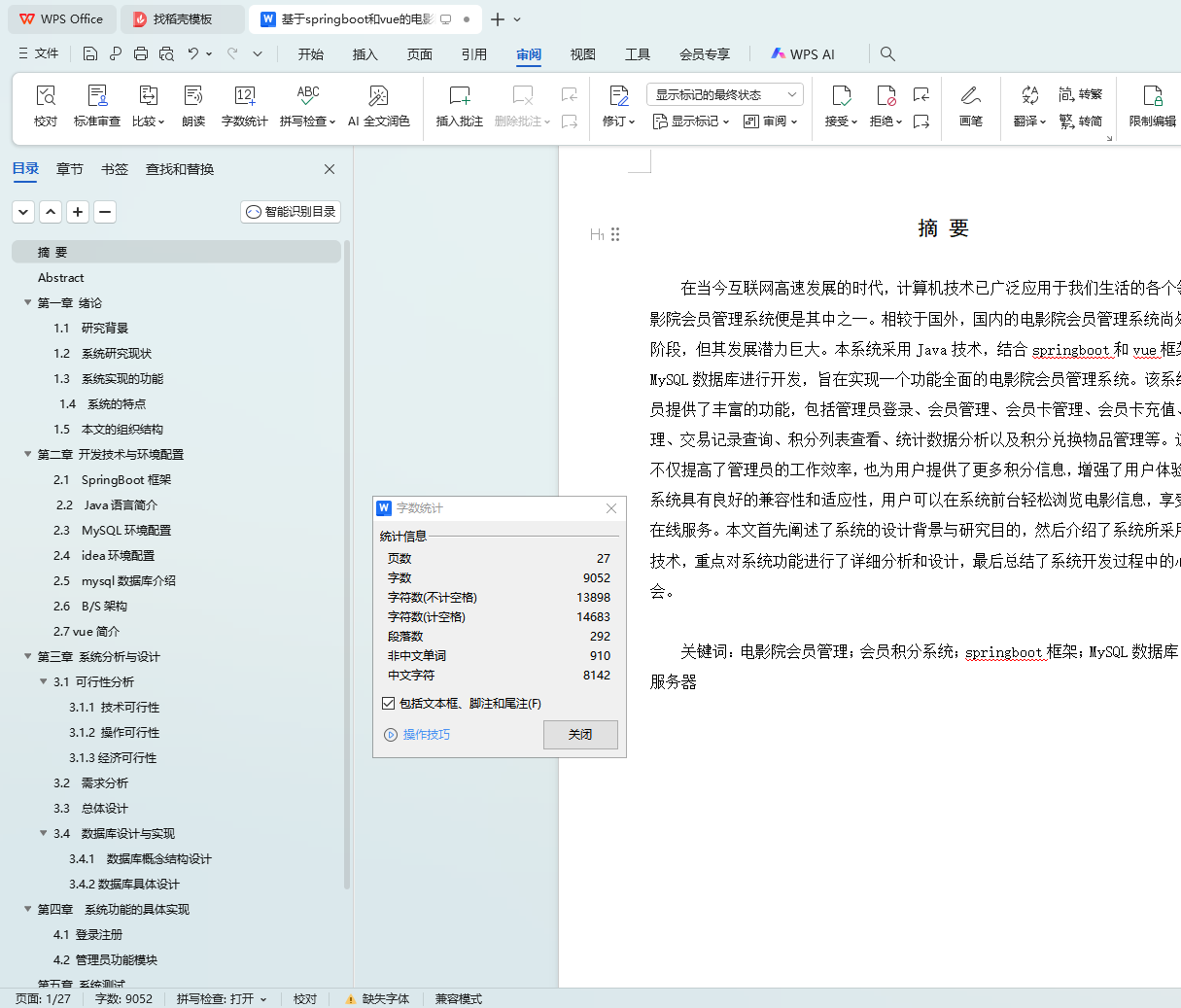 Key words: cinema membership management; membership points system; springboot framework; MySQL database; Tomcat server