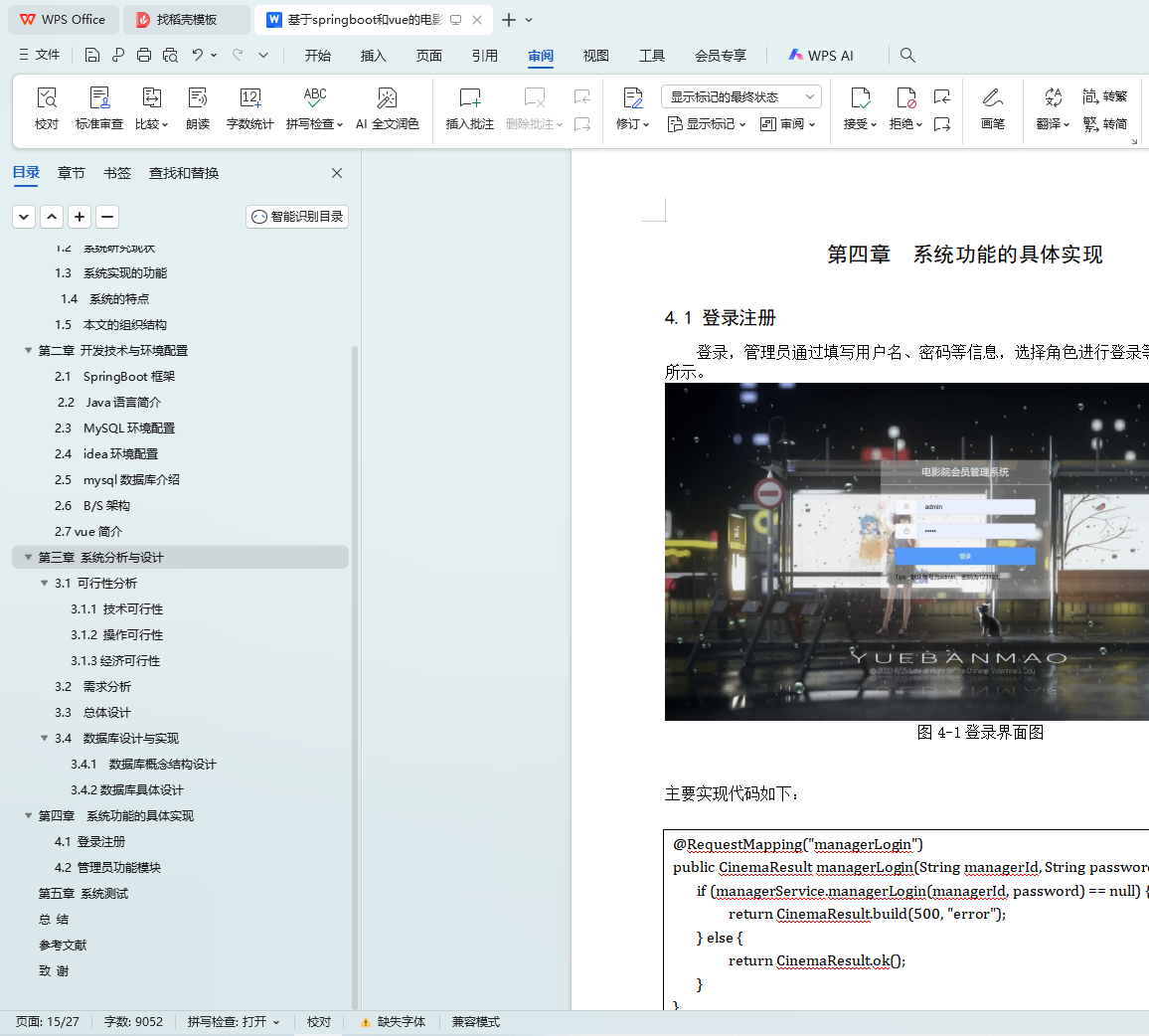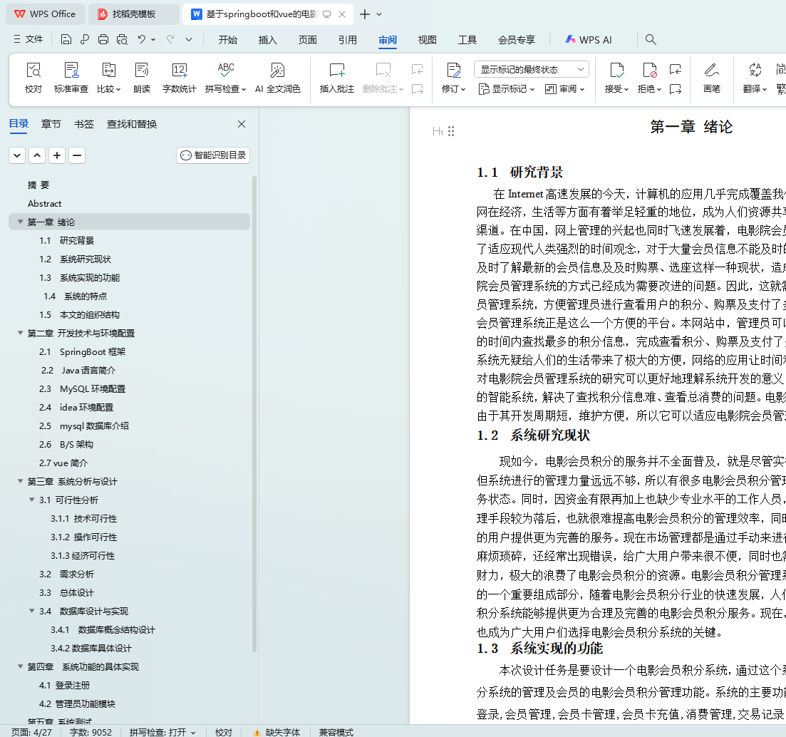 在当今互联网高速发展的时代,计算机技术已广泛应用于我们生活的各个领域,电影院会员管理系统便是其中之一。相较于国外,国内的电影院会员管理系统尚处于起步阶段,但其发展潜力巨大。本系统采用Java技术,结合springboot和vue框架,以及MySQL数据库进行开发,旨在实现一个功能全面的电影院会员管理系统。该系统为管理员提供了丰富的功能,包括管理员登录、会员管理、会员卡管理、会员卡充值、消费管理、交易记录查询、积分列表查看、统计数据分析以及积分兑换物品管理等。这些功能不仅提高了管理员的工作效率,也为用户提供了更多积分信息,增强了用户体验。同时,系统具有良好的兼容性和适应性,用户可以在系统前台轻松浏览电影信息,享受便捷的在线服务。本文首先阐述了系统的设计背景与研究目的,然后介绍了系统所采用的相关技术,重点对系统功能进行了详细分析和设计,最后总结了系统开发过程中的心得与体会。