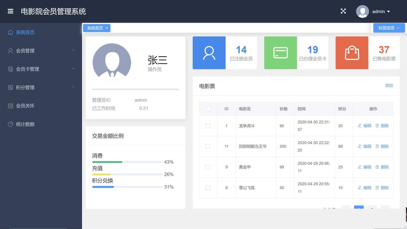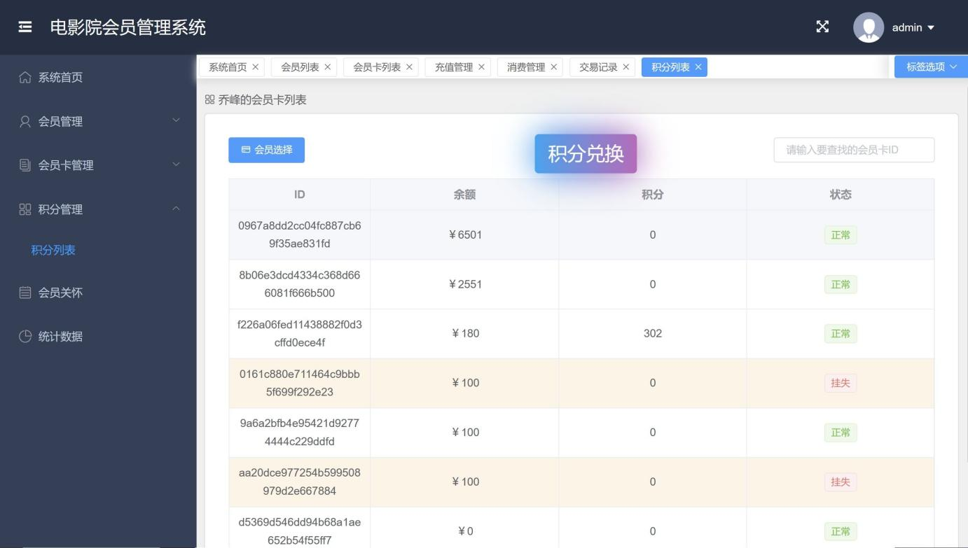 关键词:电影院会员管理;会员积分系统;springboot框架;MySQL数据库;Tomcat服务器