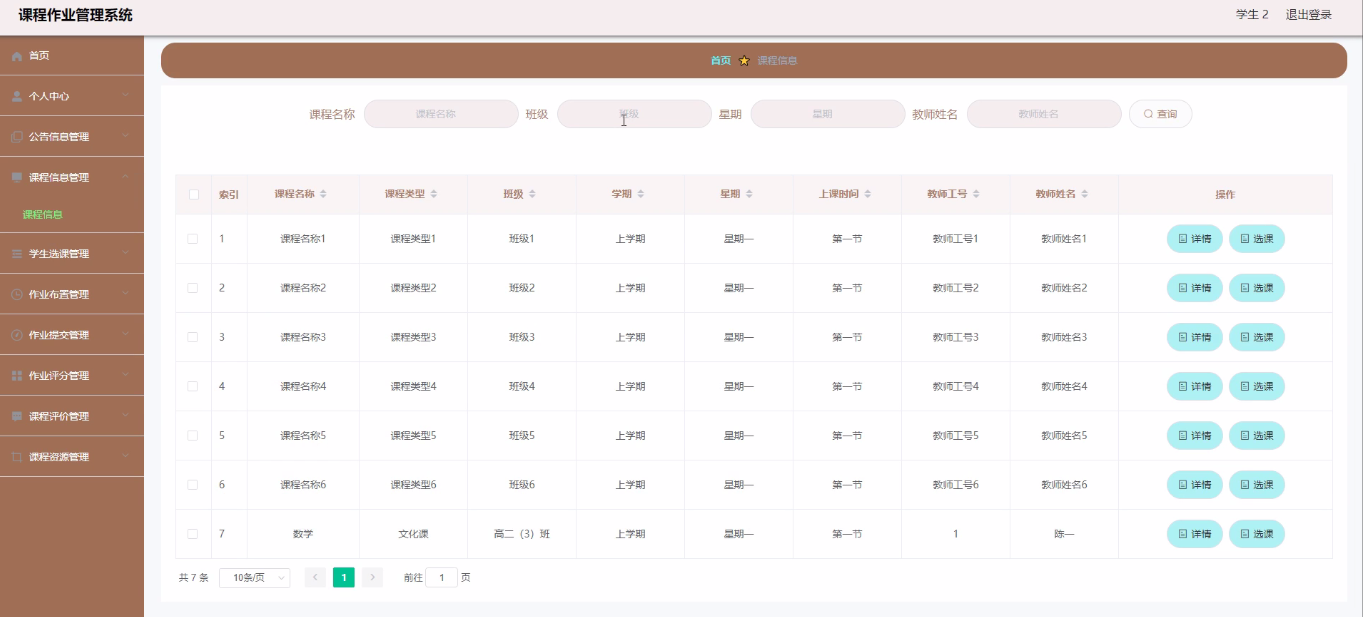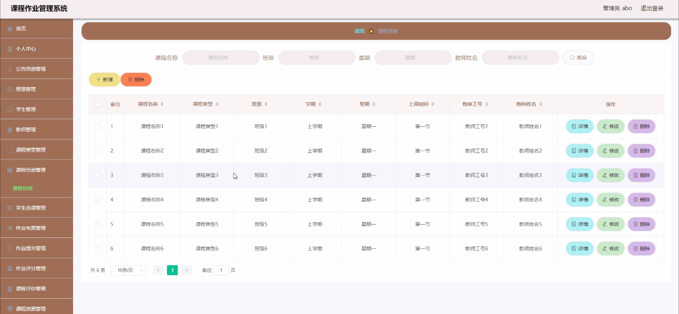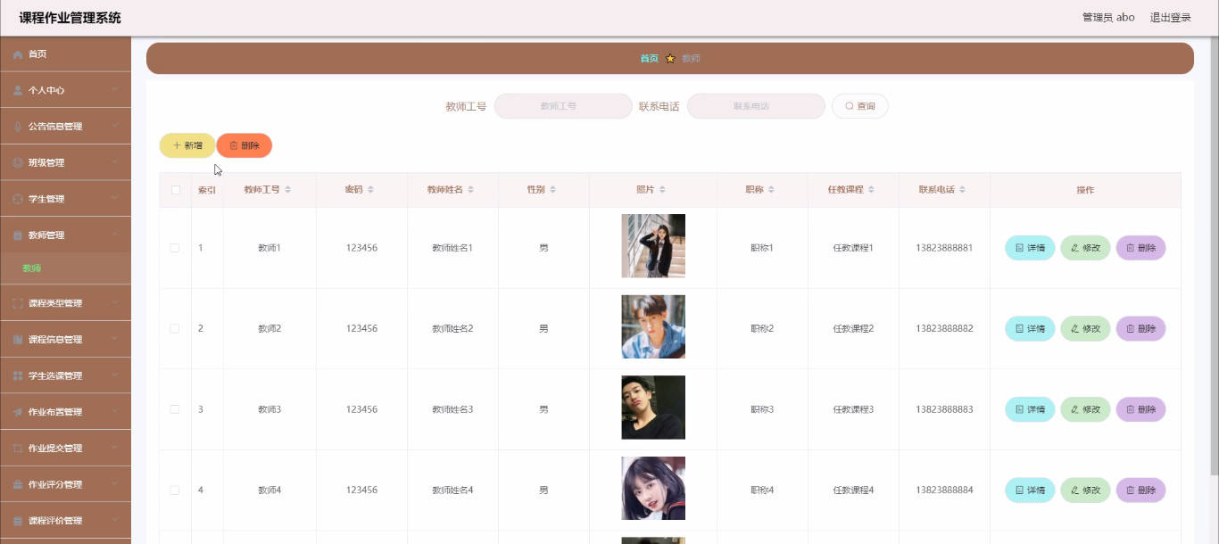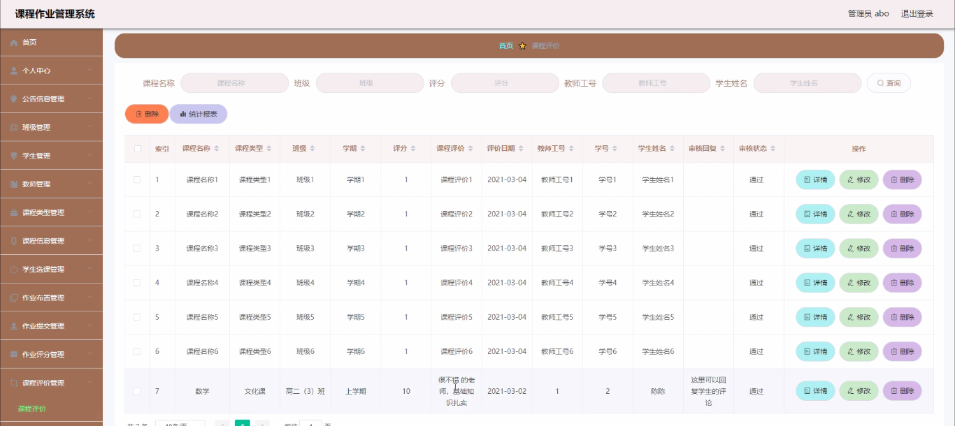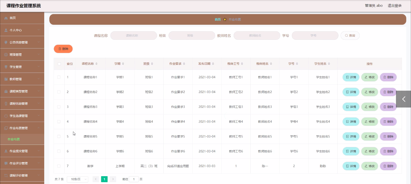 Key words: course homework system, Spring Boot framework, Mysql database, Java development, system design and implementation